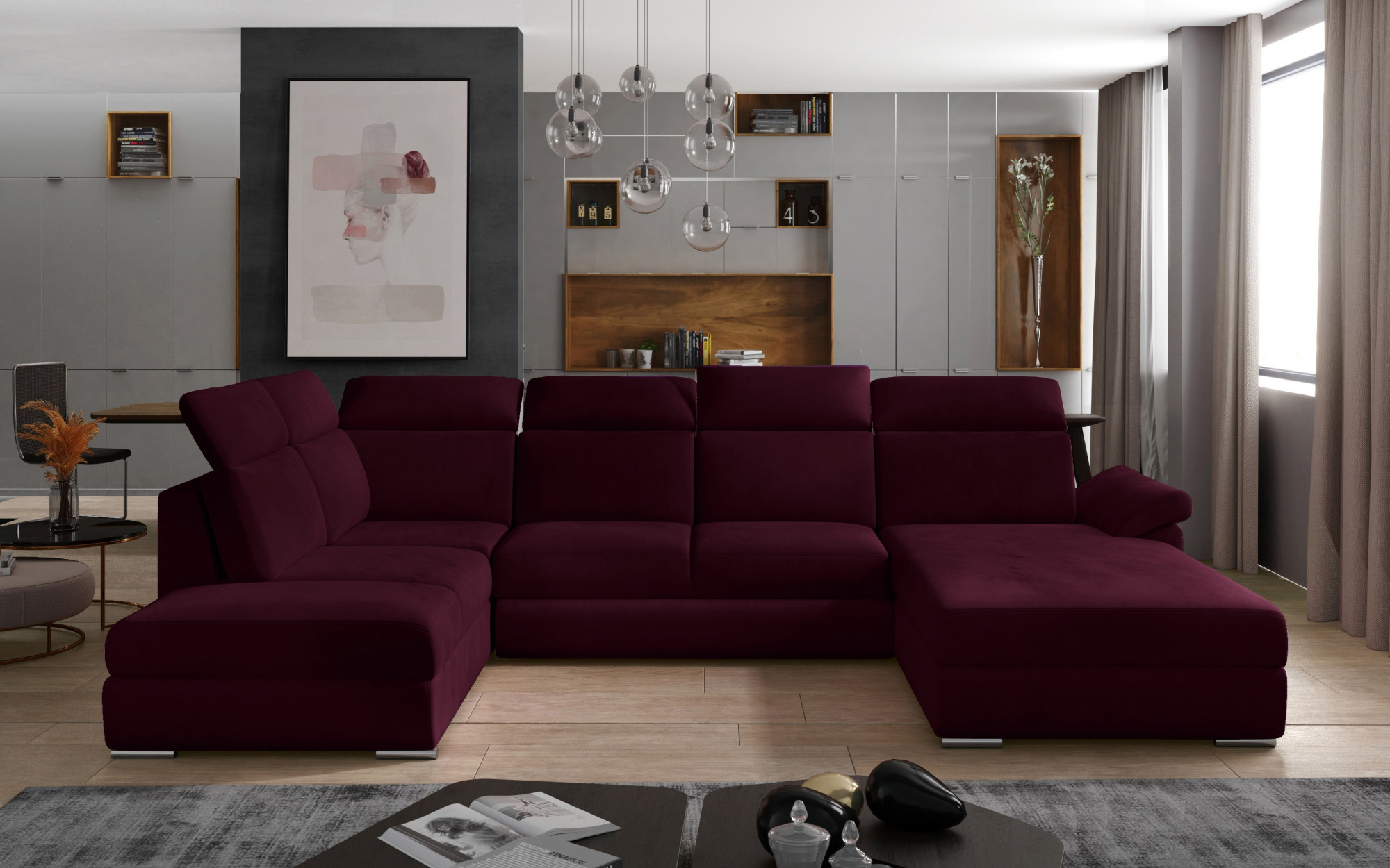 Evanell je prostorná, pohodlná a stylová rohová pohovka, která jednoduše ohromí - nejen svým klasickým tělem, které doplňuje moderní provedení jednotlivých prvků, ale také maximálním pohodlím, které lze zažít na pohovce o rozměrech 330 x 216 x 102 cm. Pohovka Evanell se ukáže jako ideální kus nábytku pro denní relaxaci, ale může také sloužit jako místo na spaní. Delfíní design umožňuje rychle a bez námahy přizpůsobit nábytek vašim aktuálním potřebám, čímž poskytuje pohodlný prostor pro odpočinek v noci. Funkčnost nábytku je také vylepšena prostorným úložným prostorem na ložní prádlo, který se nachází v otomanu. Sedák nábytku je vyroben z odolné vlnité pružiny a elastické pěny T30, které zaručují výjimečné pohodlí, maximální měkkost a odolnost proti otlakům. Za zmínku stojí také vysoké, tvarované opěrky zad, nastavitelné opěrky hlavy, šikmé opěrky rukou, čalouněná zadní část rohové pohovky, stejně jako dostupnost pohovky v mnoha barevných variantách. Evanell je kus nábytku, který splní všechna vaše očekávání - od obdivu estetických kvalit až po maximální pohodlí jak pohovky, tak postele.