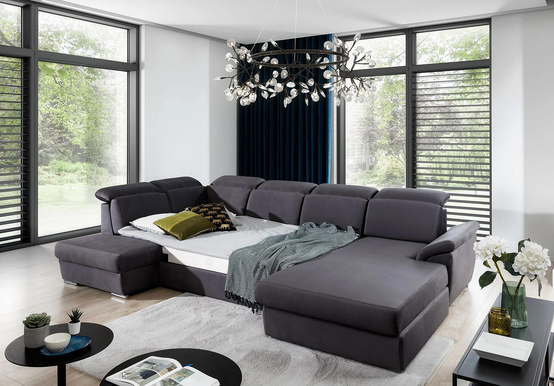 Jednou z hlavních výhod této sedací soupravy je její rozkládací funkce, která umožňuje snadno přeměnit pohovku na prostorné lůžko o rozměrech 125x265 cm. To je ideální řešení pro hosty, kteří u vás zůstanou přes noc, nebo pro ty, kteří si rádi dopřejí odpolední odpočinek.