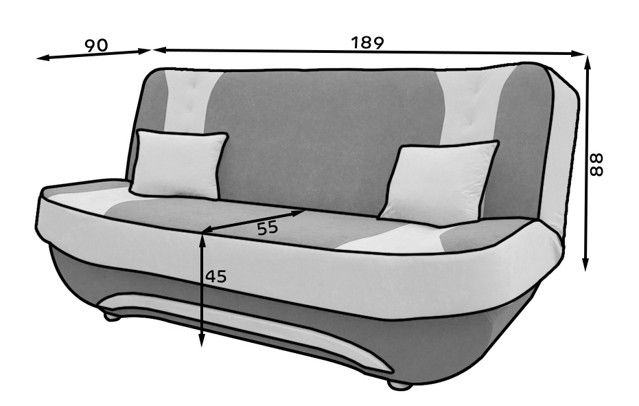 Eve II je pohodlná a stylová pohovka s rozměry 182 x 90 x 88 cm, která přitahuje pozornost svým originálním designem. Elegantní tvar, mírně zaoblené hrany, dřevěná lamela ve spodní části nábytku a také možnost volby barevné varianty - to vše přispívá k jeho originalitě. Na druhou stranu, maximální pohodlí je ovlivněno výplní ve formě bonelu a pěny T25 - obě řešení se starají o správné vyrovnání páteře a zaručují správnou polohu těla jak při denním používání, tak při odpočinku v noci - na posteli o rozměrech 182 x 120 cm. Díky funkci click-clack se náš kus nábytku snadno a rychle rozkládá. Dokonalým vyvrcholením jeho funkčnosti je prostorný úložný prostor na lůžkoviny. Stojí za to mít ve svém bytě tak zajímavě tvarovanou a dokončenou pohovku.