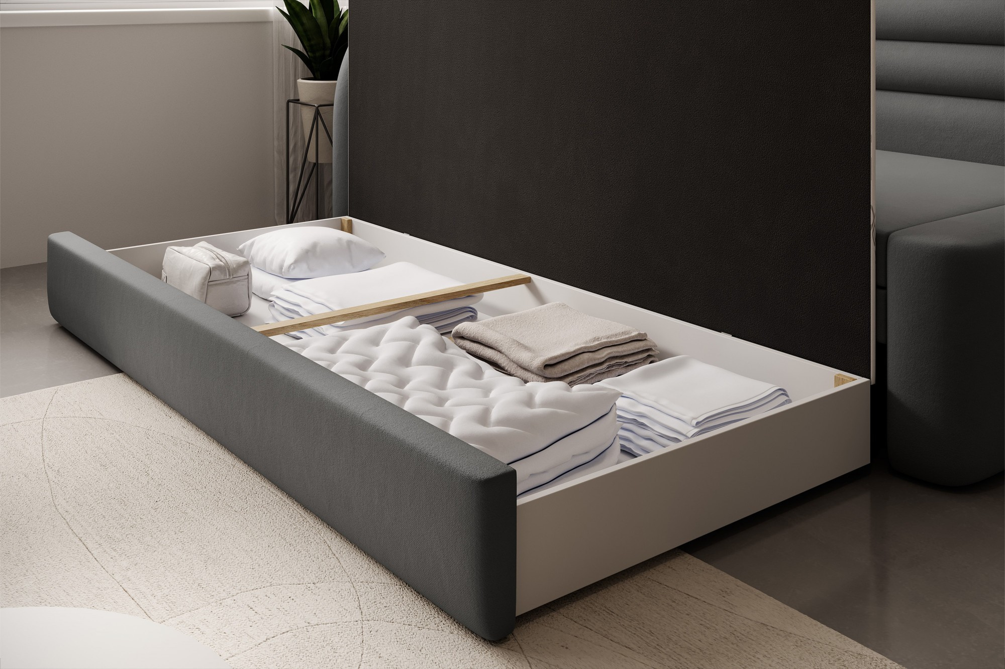 Tato pohovka je vybavena praktickým úložným prostorem, který vám umožní snadno uschovat deky, polštáře nebo jiné drobnosti, které chcete mít po ruce, ale zároveň je mít úhledně uklizené. Rozkládací mechanismus je dalším skvělým prvkem, který z pohovky Fabillo dělá ideální volbu pro ty, kteří potřebují občasné místo na spaní pro hosty.