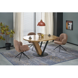 Design stolu FANIS kombinuje přírodní a černé prvky, které vytvářejí harmonický a moderní vzhled. Tento stůl se snadno stane ústředním bodem vaší jídelny, ať už preferujete minimalistický, skandinávský nebo industriální styl. Jeho čisté linie a elegantní povrchová úprava zaručují, že se stane nadčasovým kouskem ve vašem domově.