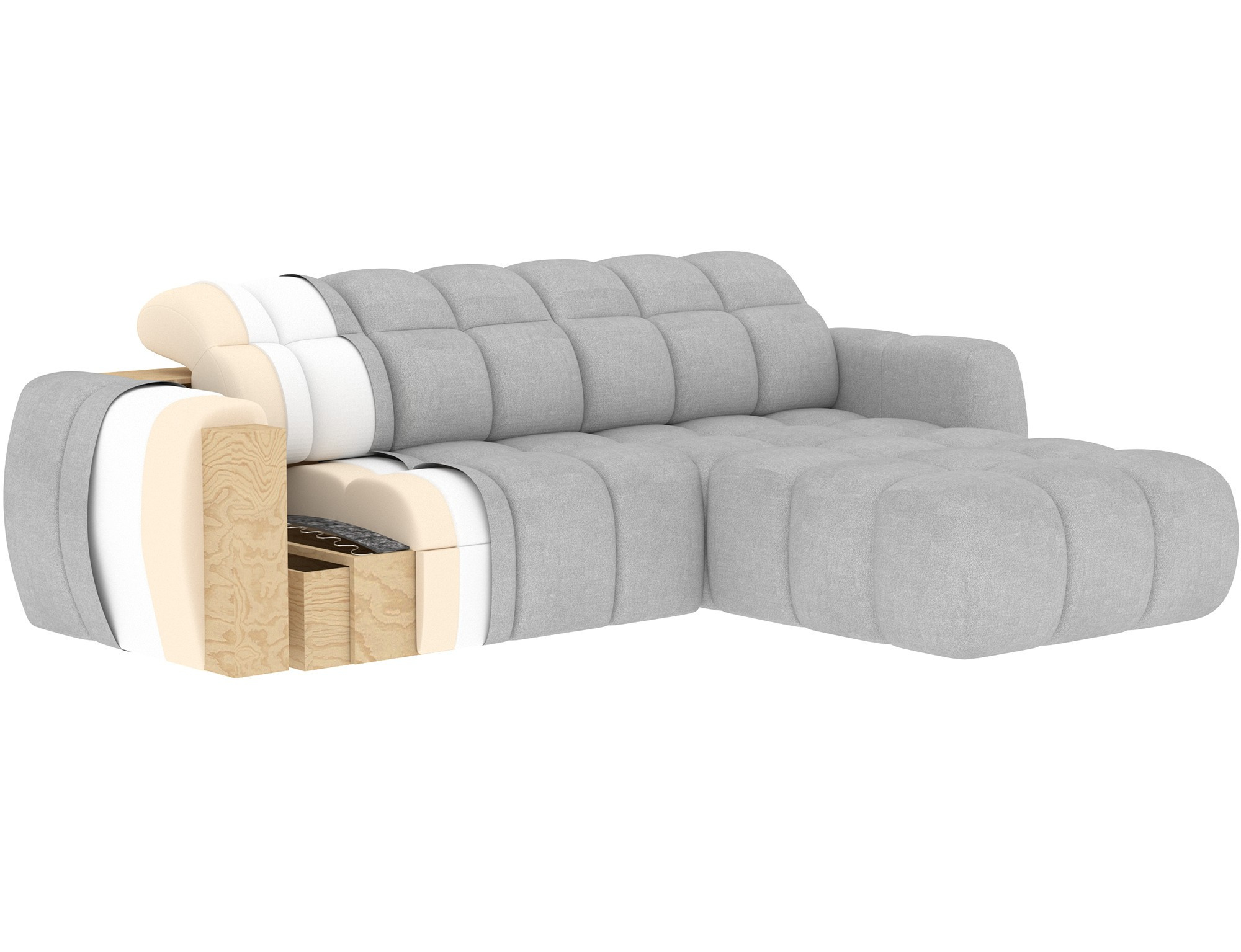 Sedací část je vyrobena z pružiny falista typu B, polyuretanové pěny HR3030 a rouna, což zajišťuje optimální podporu a pohodlí. Opěrná část je tvořena profilovanou polyuretanovou pěnou T2316 a rounem, což přispívá k celkovému komfortu a dlouhé životnosti soupravy.