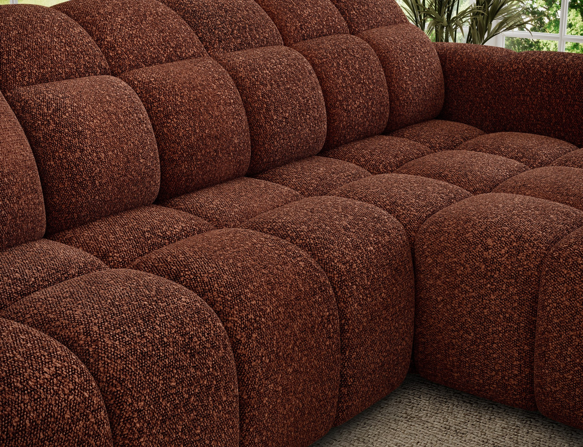 Sedací část je vyrobena z pružiny falista typu B, polyuretanové pěny HR3030 a rouna, což zajišťuje optimální podporu a pohodlí. Opěrná část je tvořena profilovanou polyuretanovou pěnou T2316 a rounem, což přispívá k celkovému komfortu a dlouhé životnosti soupravy.