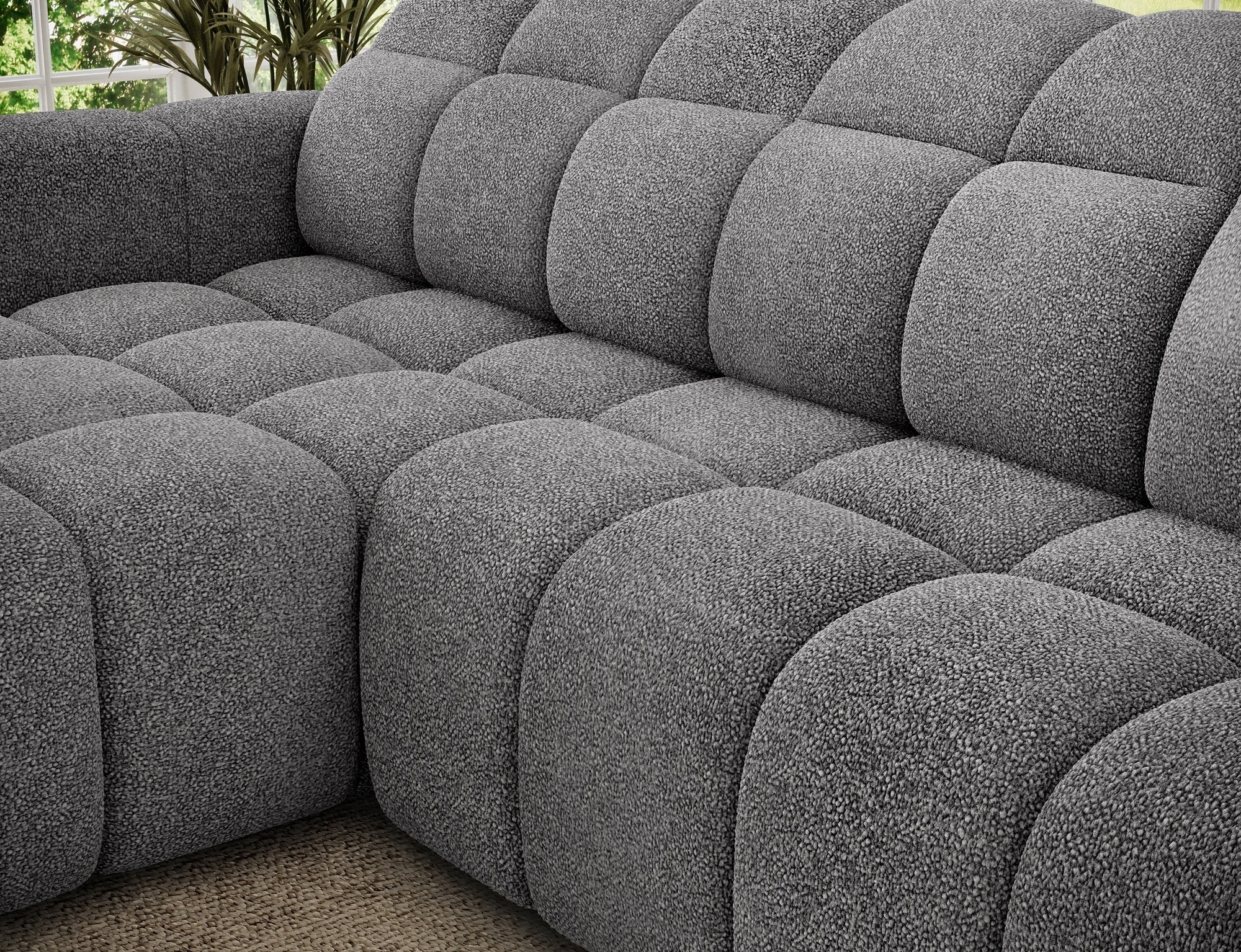 Sedací část je vyrobena z pružiny falista typu B, polyuretanové pěny HR3030 a rouna, což zajišťuje optimální podporu a pohodlí. Opěrná část je tvořena profilovanou polyuretanovou pěnou T2316 a rounem, což přispívá k celkovému komfortu a dlouhé životnosti soupravy.