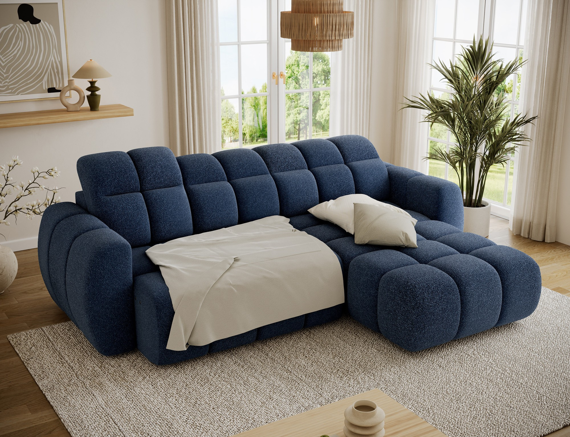 Jednou z hlavních výhod této sedací soupravy je možnost rozkládání, která nabízí plochu na spaní o rozměrech 84 x 232 cm. To je ideální řešení pro hosty nebo pro ty, kteří si chtějí dopřát pohodlný spánek přímo v obývacím pokoji. I když souprava neobsahuje úložný prostor, její multifunkčnost a pohodlí to více než vynahradí.