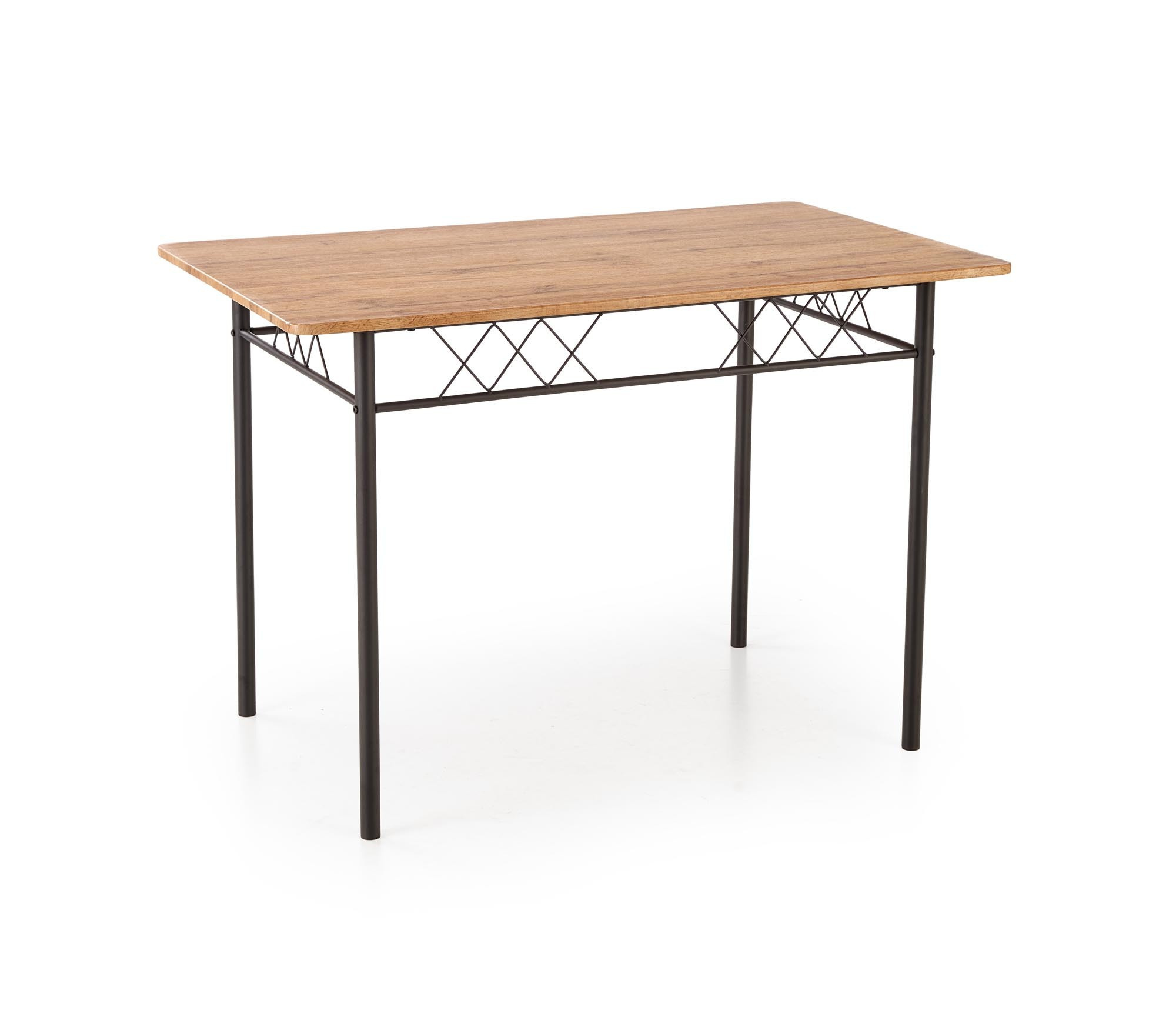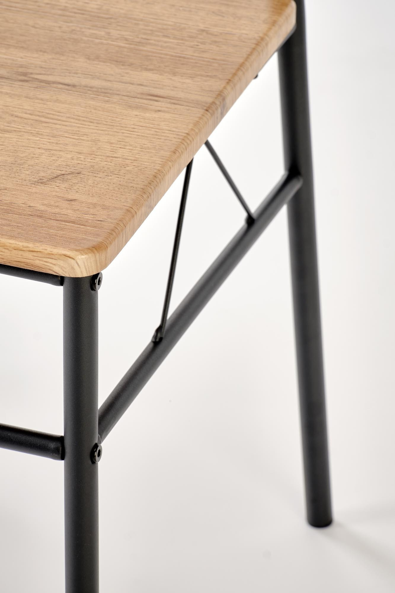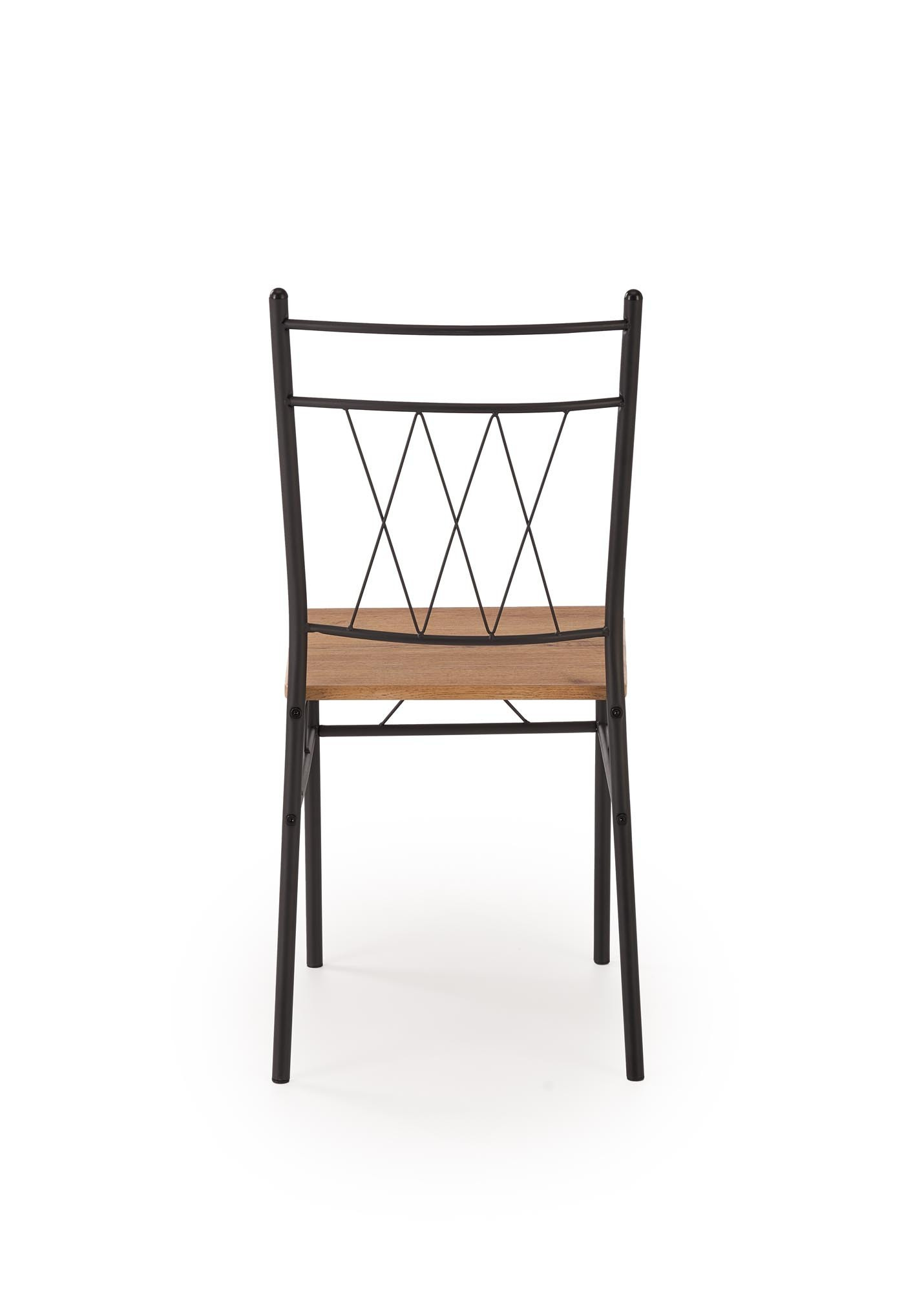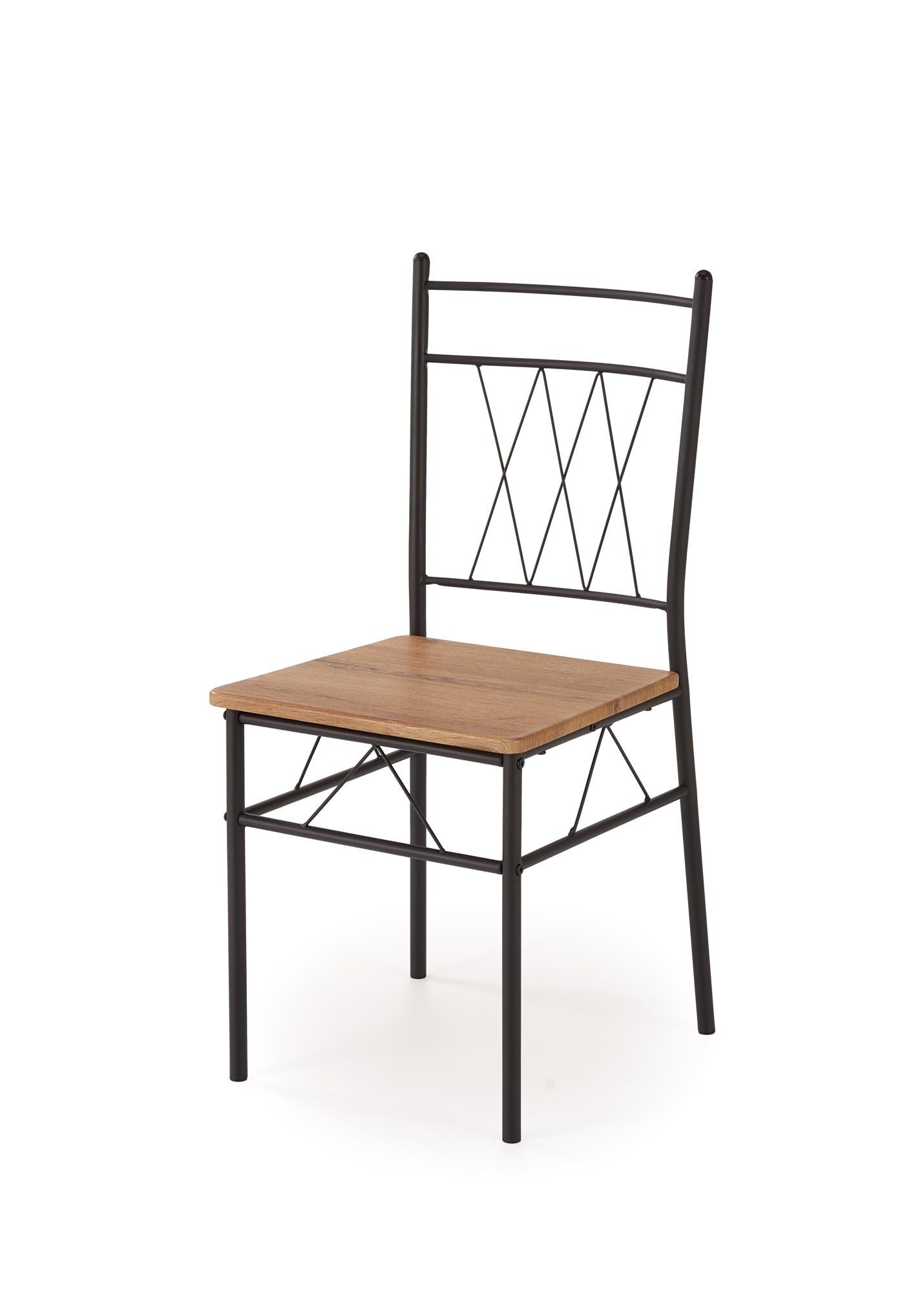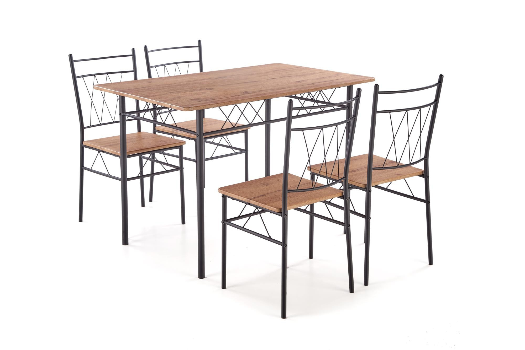 stůl o rozměrech: 110/70/75 cm, židle o rozměrech: 36/38/84 cm, materiál: ocel lakovaná práškovou barvou / laminované MDF, barva: přírodní dub / černá