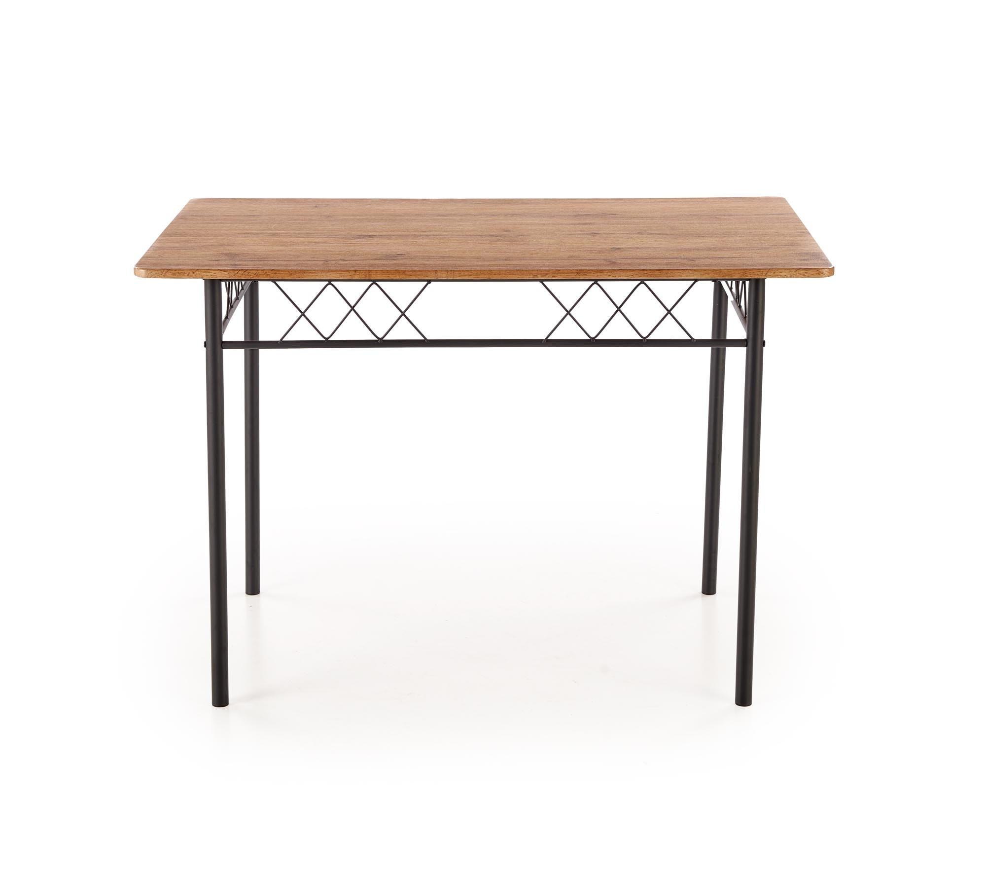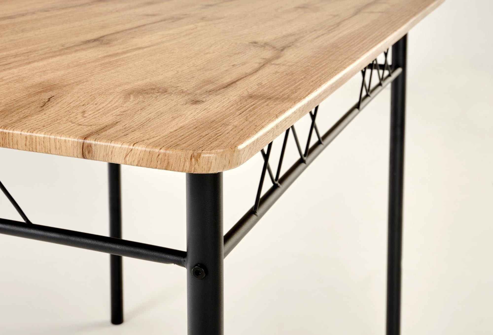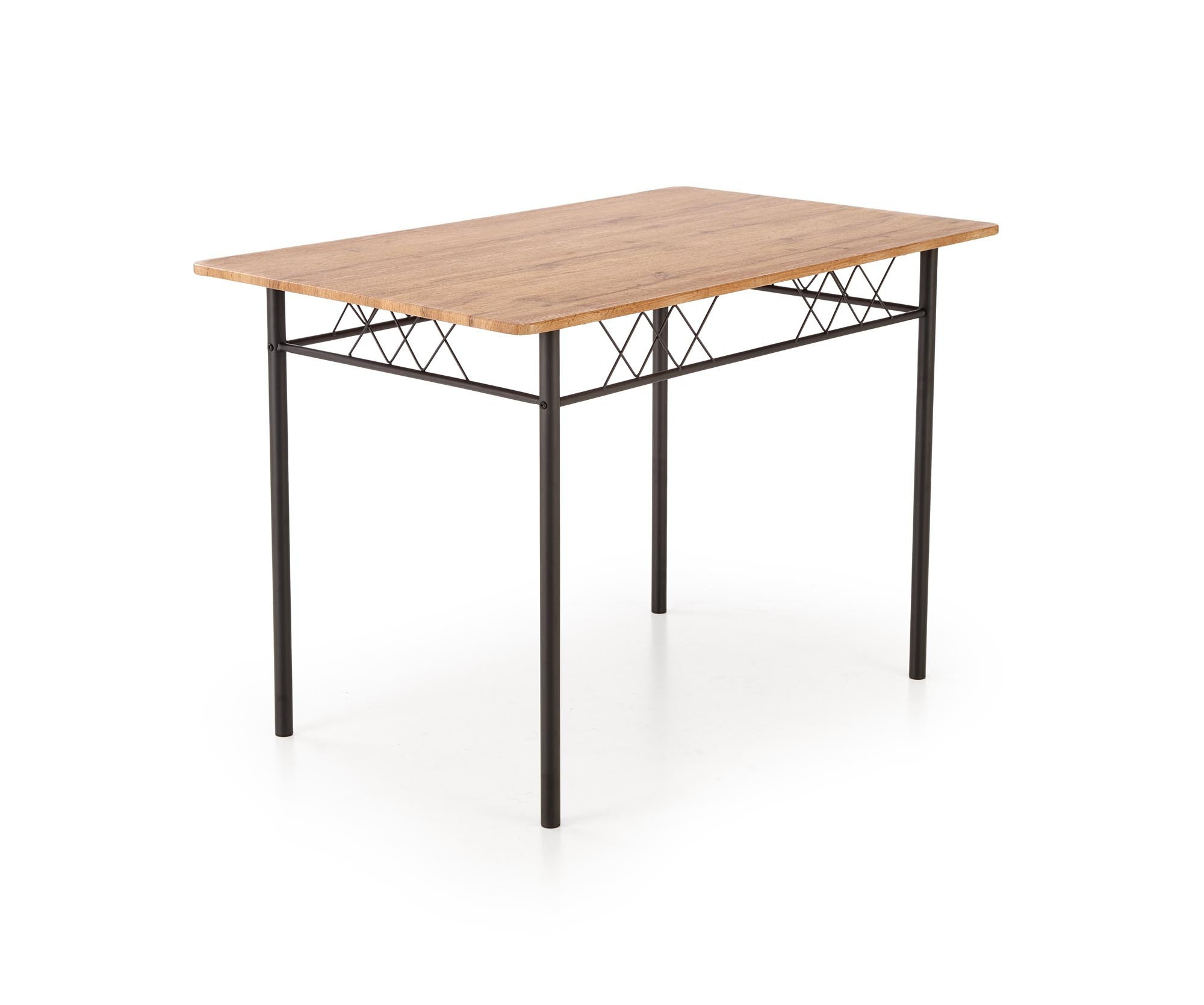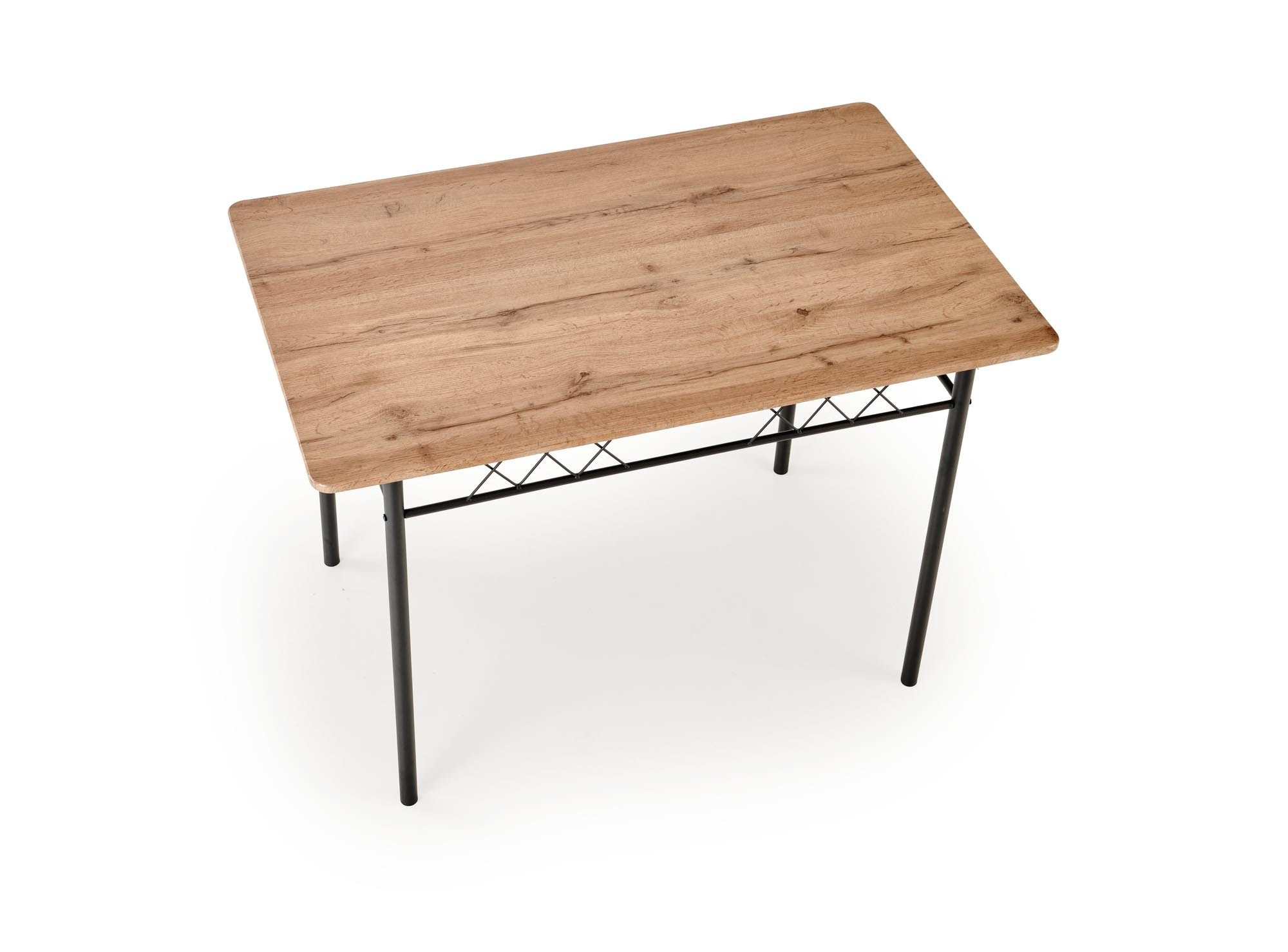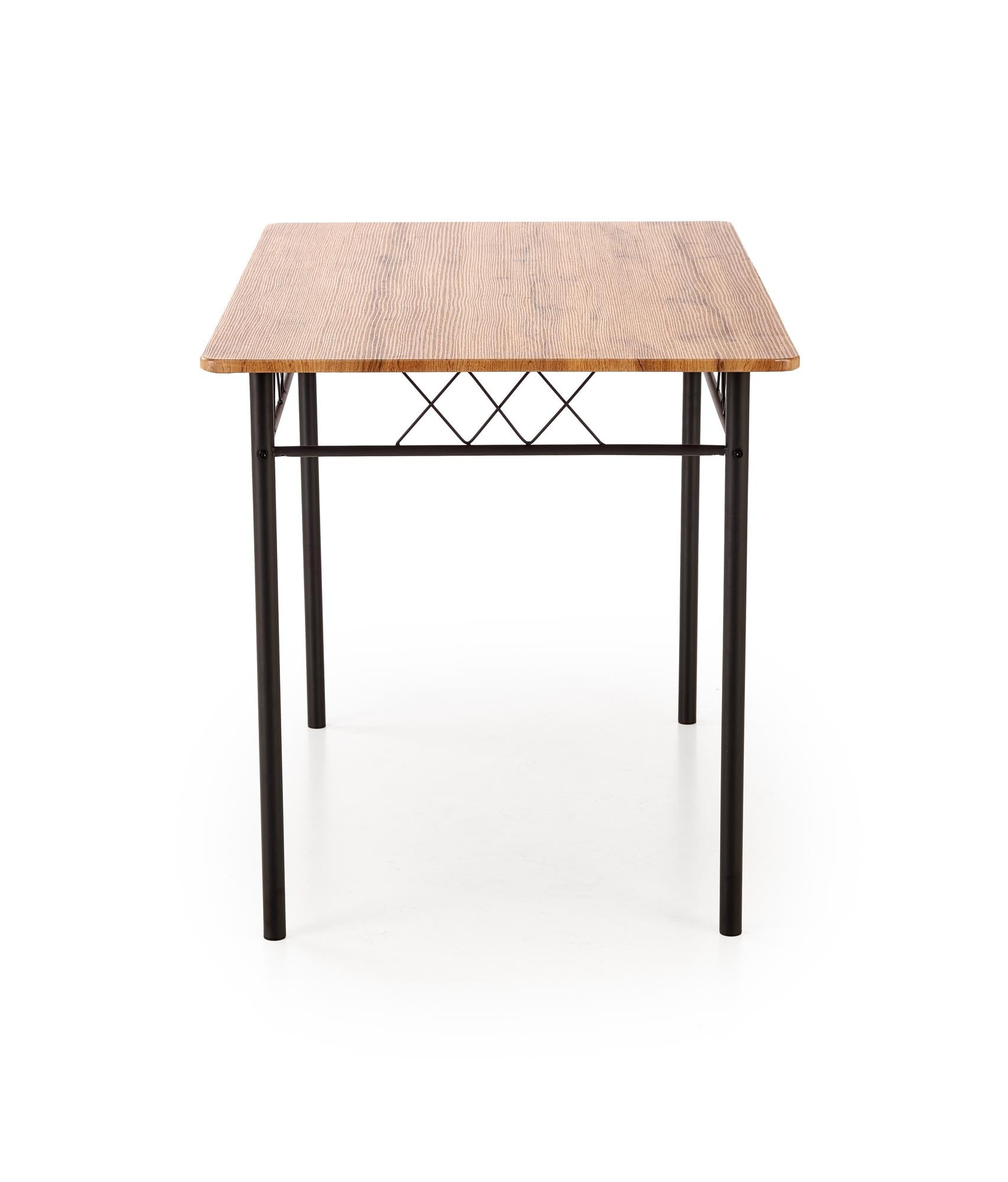 stůl o rozměrech: 110/70/75 cm, židle o rozměrech: 36/38/84 cm, materiál: ocel lakovaná práškovou barvou / laminované MDF, barva: přírodní dub / černá