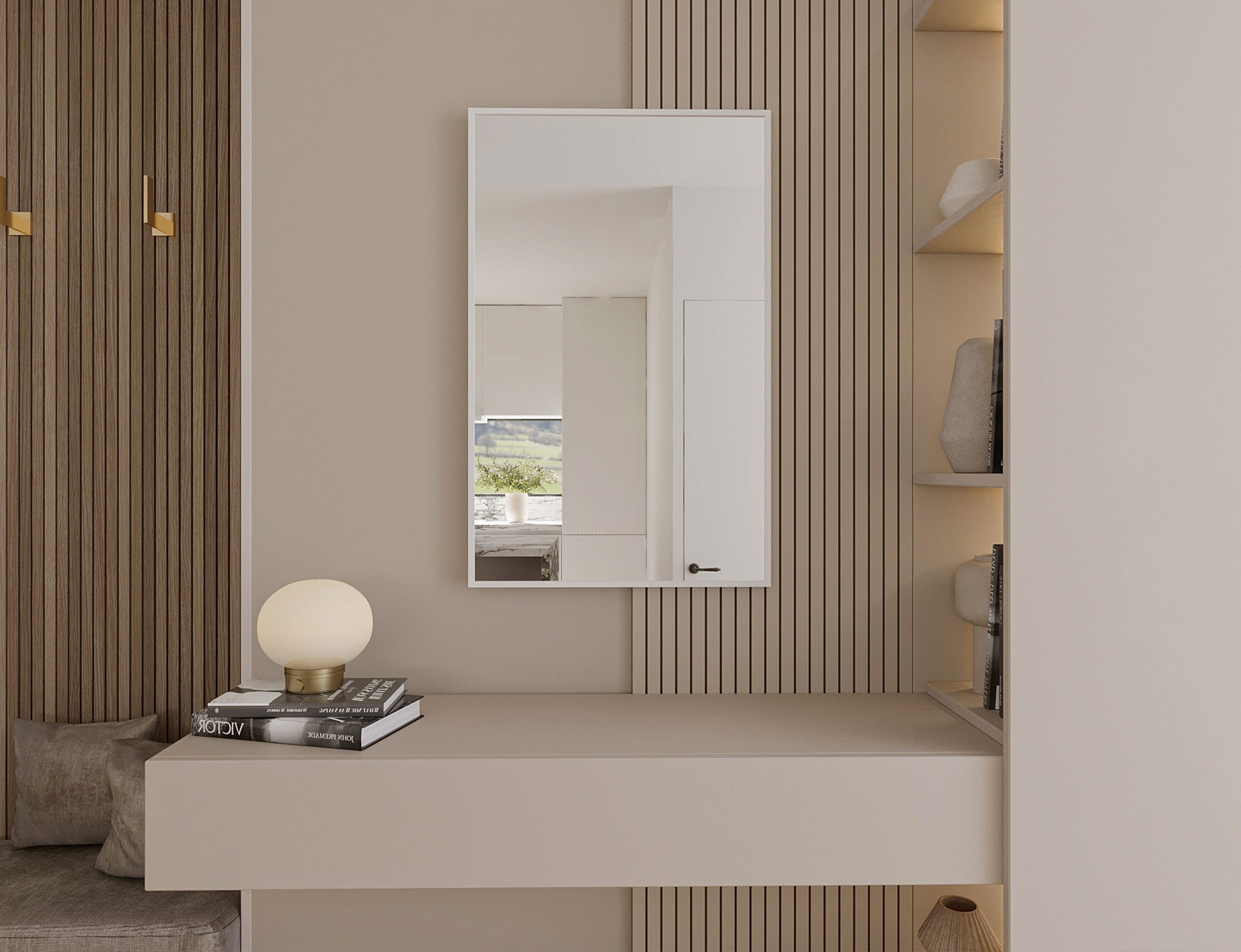 Zrcadlo Fellan o rozměrech 60x70 cm je elegantním a praktickým řešením pro různé místnosti. Díky své střední velikosti je ideální pro koupelny, ložnice a chodby. Je snadné pověsit na zeď pomocí dvou háčků, které jsou součástí sady, což umožňuje rychlou a bezproblémovou instalaci. Jeho klasický design a univerzální tvar se dobře hodí k různým stylům interiéru. Pevná konstrukce zajišťuje odolnost a stabilitu, takže si můžete zrcadlo užívat po mnoho let. Navíc jeho promyšlená velikost poskytuje praktičnost a funkčnost při každodenním používání.