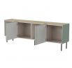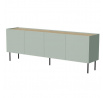 FELLINI komoda 200 olivka/olivka rozměry: V/Š/H - 70cm/200cm/40cm materiál: boky: MDF deska 16 mm lakovaná čela: MDF deska 16mm lakovaná horní a dolní deska: dřevotříska 16mm barva: imitace olejovaného dubu nožky: kovové, černé barvy, výška 20 cm Úchyty: žádné, čela přesahují přes desku