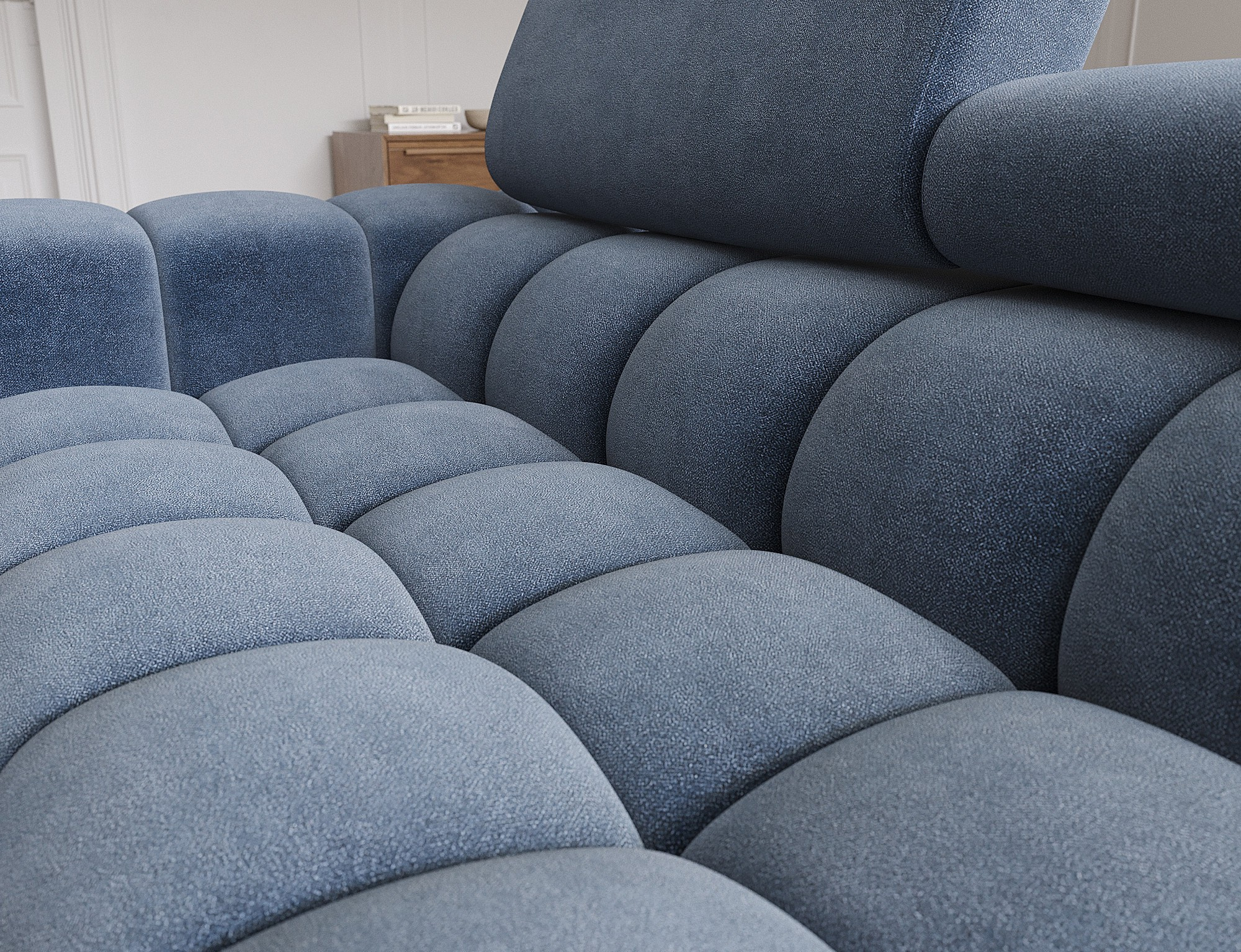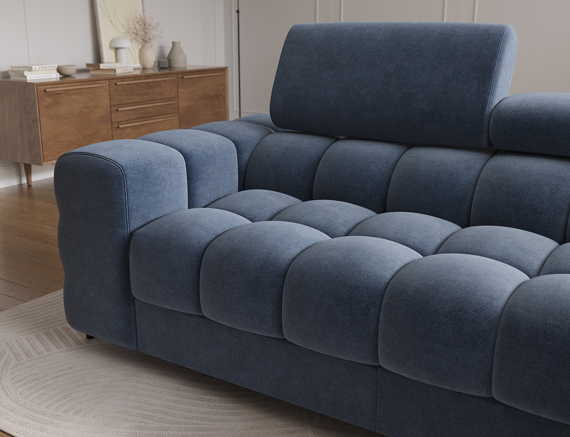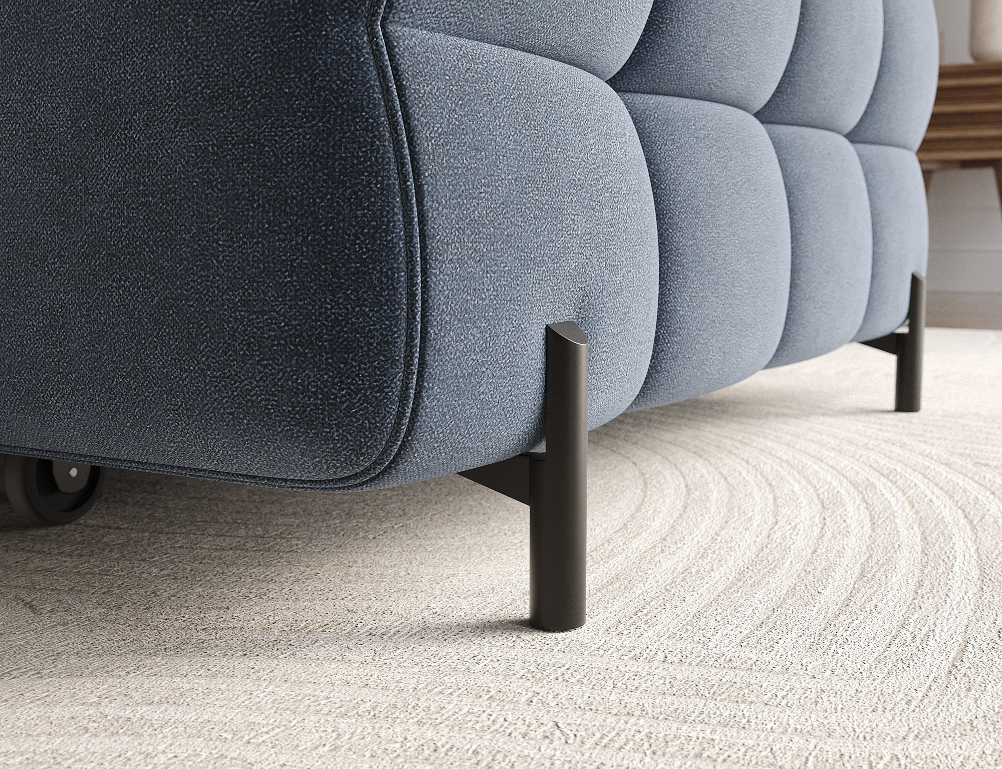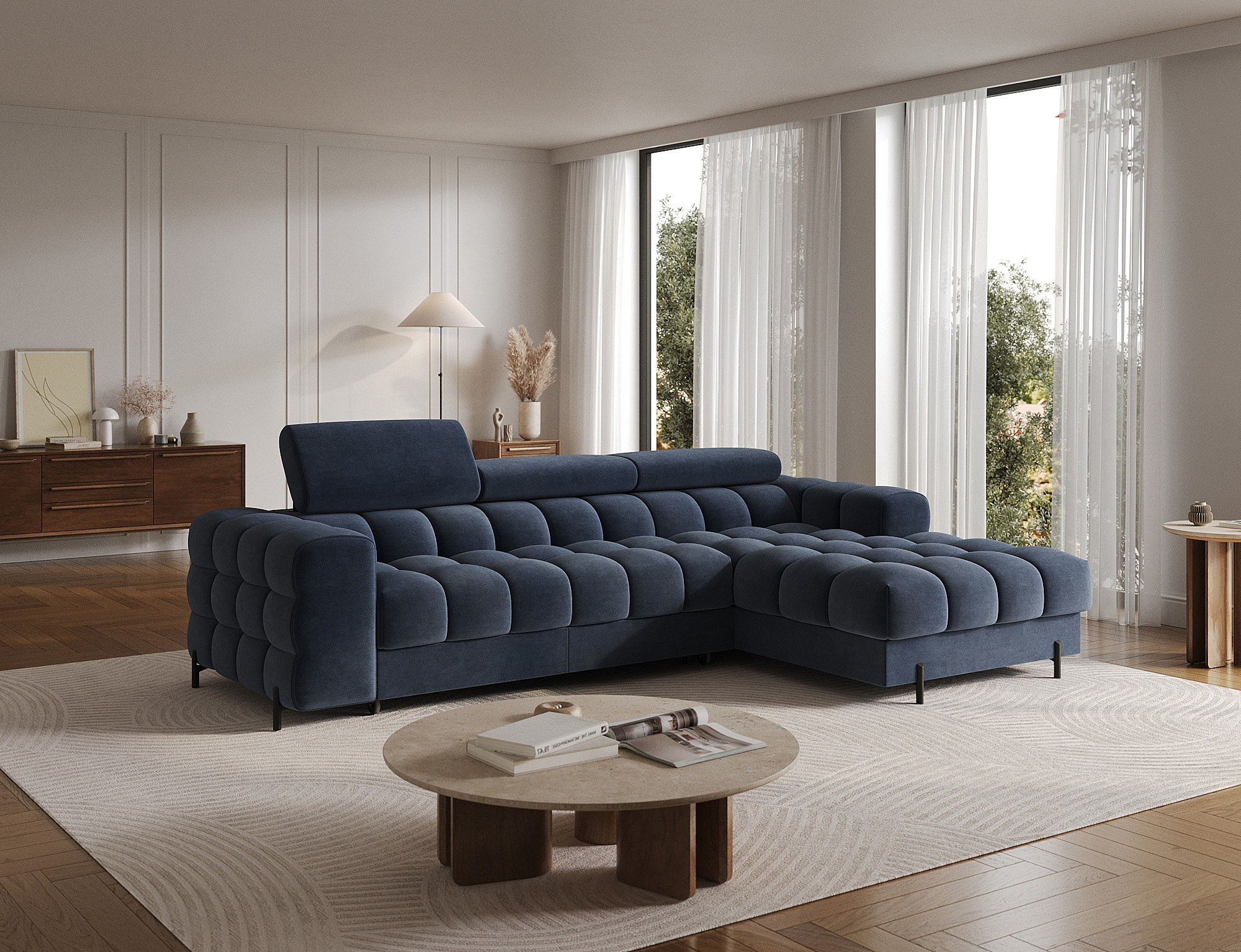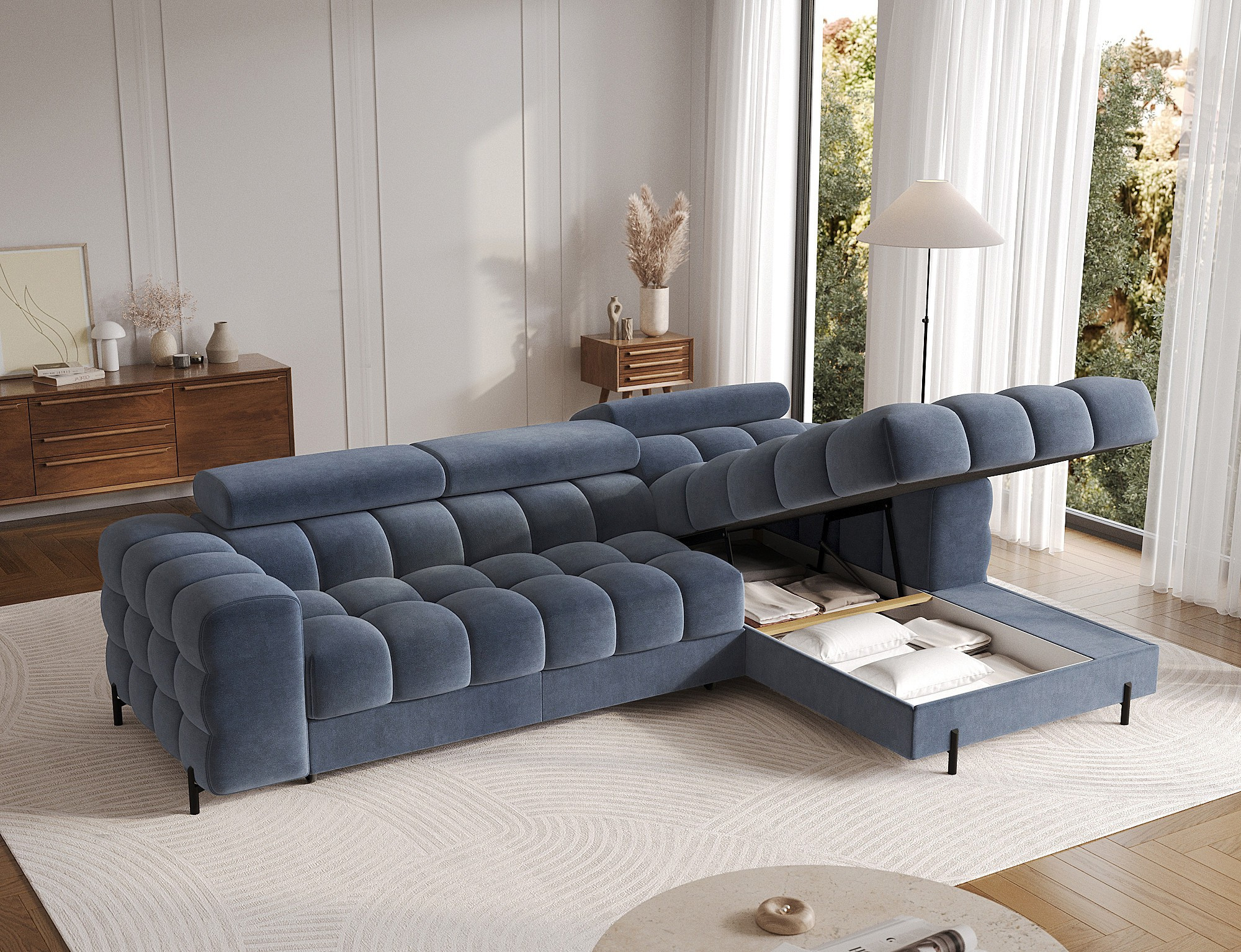 Rohová pohovka Felro je kombinací moderního designu, pohodlí a funkčnosti. Sedák pohovky je vyplněn vlnovými pružinami typu B a vysoce kvalitní pěnou T3030 a HR3030, což zajišťuje výjimečné pohodlí pro každodenní použití a relaxaci. To činí nábytek nejen měkkým a flexibilním, ale také odolným vůči deformaci, což zaručuje dlouhotrvající trvanlivost.Robustní konstrukce je podepřena kovovými nohami, které jsou opatřeny černým práškovým nástřikem, což celkovému designu dodává elegantní a moderní nádech. Felro má také funkci spaní, což z něj činí ideální volbu pro obývací pokoj, kde záleží jak na stylu, tak na praktičnosti. Mechanismus rozkládání "Dolphin" umožňuje snadnou a rychlou přeměnu pohovky na pohodlné lůžko.Další výhodou je čalouněné opěradlo, které zajišťuje, že pohovka vypadá skvěle z každého úhlu a může být umístěna buď proti zdi, nebo uprostřed místnosti. Celý design se nese v moderním stylu, díky čemuž je Felro ideální pro současné interiéry, přičemž přidává jak eleganci, tak funkčnost.