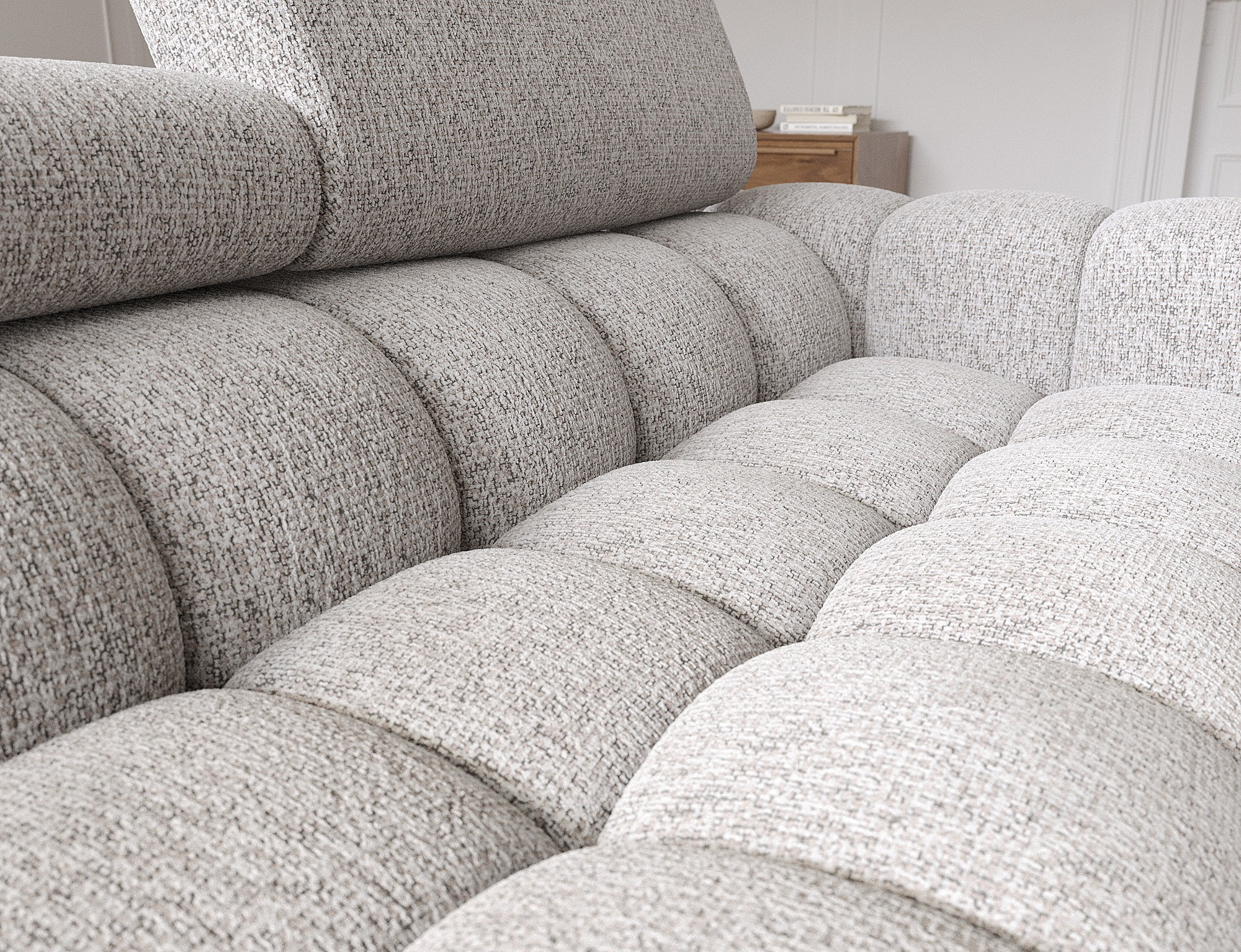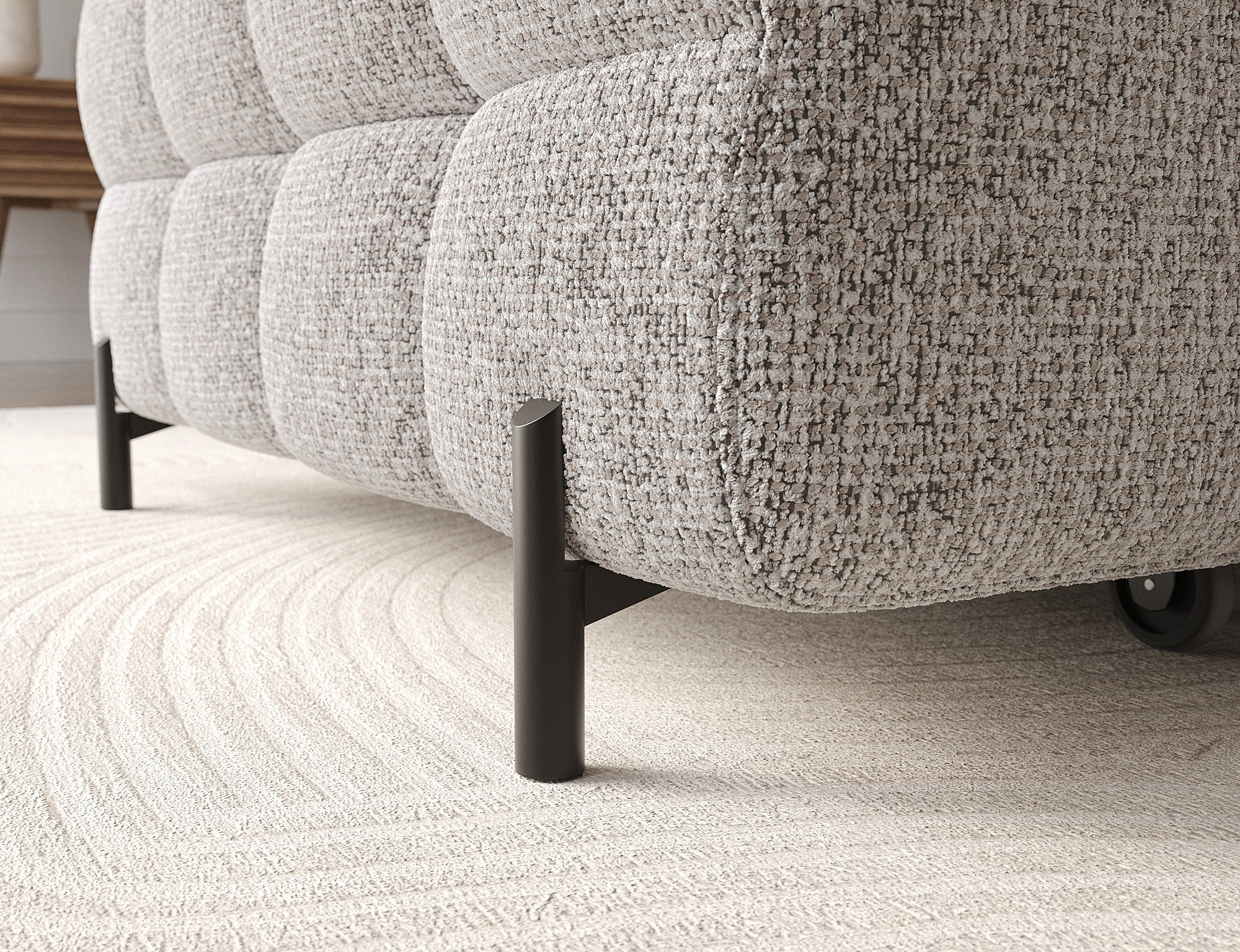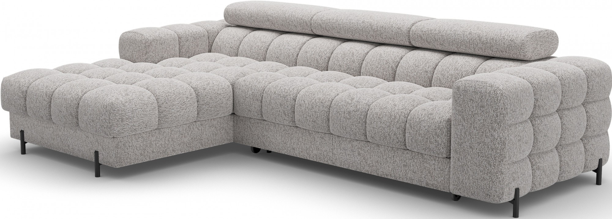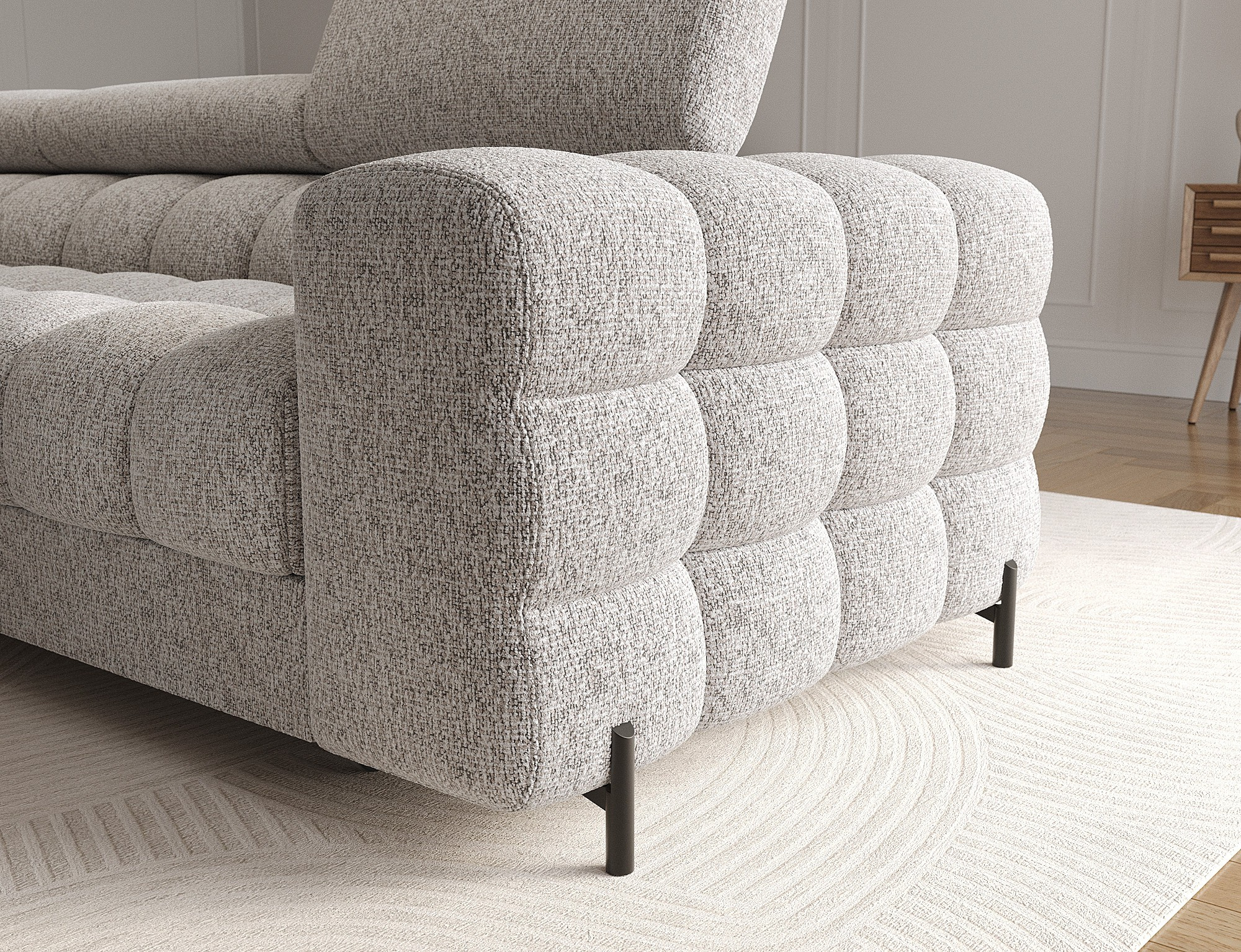 Rohová pohovka Felro je kombinací moderního designu, pohodlí a funkčnosti. Sedák pohovky je vyplněn vlnovými pružinami typu B a vysoce kvalitní pěnou T3030 a HR3030, což zajišťuje výjimečné pohodlí pro každodenní použití a relaxaci. To činí nábytek nejen měkkým a flexibilním, ale také odolným vůči deformaci, což zaručuje dlouhotrvající trvanlivost.Robustní konstrukce je podepřena kovovými nohami, které jsou opatřeny černým práškovým nástřikem, což celkovému designu dodává elegantní a moderní nádech. Felro má také funkci spaní, což z něj činí ideální volbu pro obývací pokoj, kde záleží jak na stylu, tak na praktičnosti. Mechanismus rozkládání "Dolphin" umožňuje snadnou a rychlou přeměnu pohovky na pohodlné lůžko.Další výhodou je čalouněné opěradlo, které zajišťuje, že pohovka vypadá skvěle z každého úhlu a může být umístěna buď proti zdi, nebo uprostřed místnosti. Celý design se nese v moderním stylu, díky čemuž je Felro ideální pro současné interiéry, přičemž přidává jak eleganci, tak funkčnost.