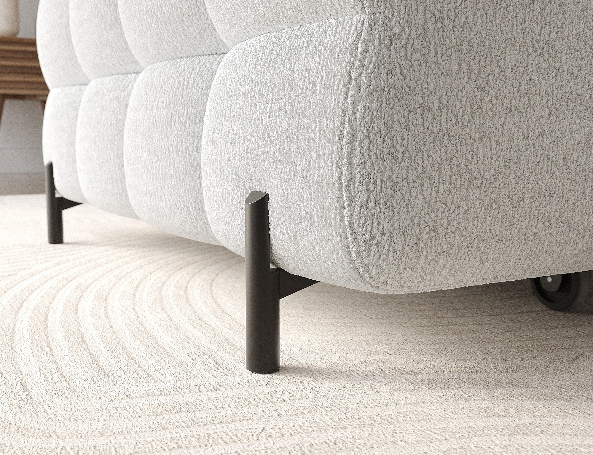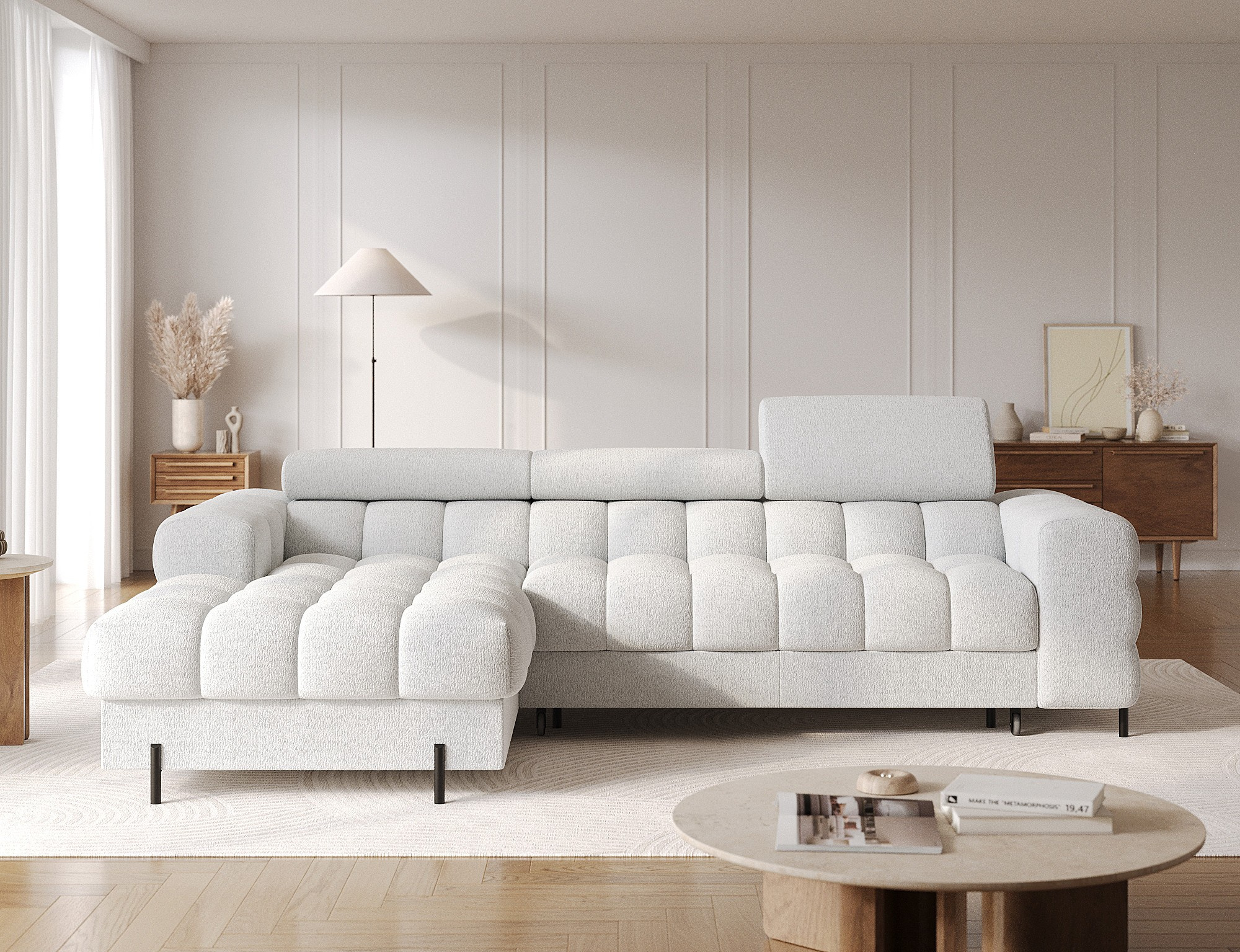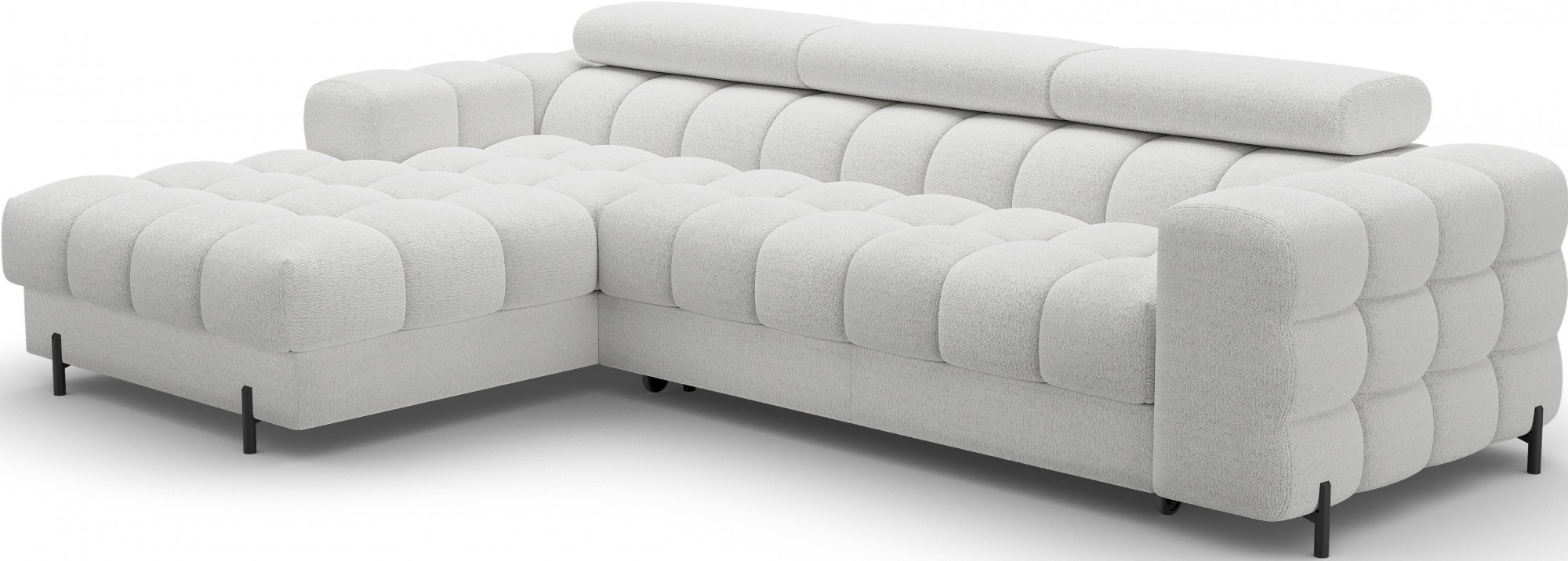 Rohová pohovka Felro je kombinací moderního designu, pohodlí a funkčnosti. Sedák pohovky je vyplněn vlnovými pružinami typu B a vysoce kvalitní pěnou T3030 a HR3030, což zajišťuje výjimečné pohodlí pro každodenní použití a relaxaci. To činí nábytek nejen měkkým a flexibilním, ale také odolným vůči deformaci, což zaručuje dlouhotrvající trvanlivost.Robustní konstrukce je podepřena kovovými nohami, které jsou opatřeny černým práškovým nástřikem, což celkovému designu dodává elegantní a moderní nádech. Felro má také funkci spaní, což z něj činí ideální volbu pro obývací pokoj, kde záleží jak na stylu, tak na praktičnosti. Mechanismus rozkládání "Dolphin" umožňuje snadnou a rychlou přeměnu pohovky na pohodlné lůžko.Další výhodou je čalouněné opěradlo, které zajišťuje, že pohovka vypadá skvěle z každého úhlu a může být umístěna buď proti zdi, nebo uprostřed místnosti. Celý design se nese v moderním stylu, díky čemuž je Felro ideální pro současné interiéry, přičemž přidává jak eleganci, tak funkčnost.
