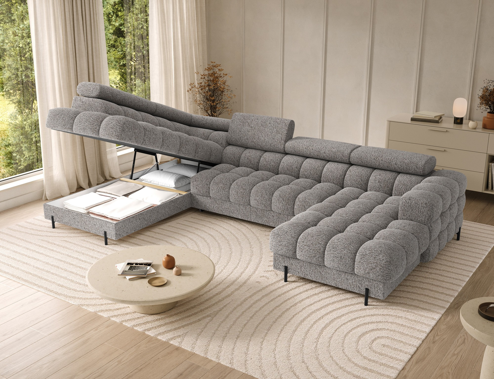 Jednou z hlavních předností této sedací soupravy je její úložný prostor. Už nikdy nebudete muset řešit, kam uložit deky, polštáře nebo sezónní dekorace. Všechny tyto věci můžete snadno a rychle uschovat přímo v sedací soupravě, což vám pomůže udržet váš obývací pokoj čistý a uspořádaný.