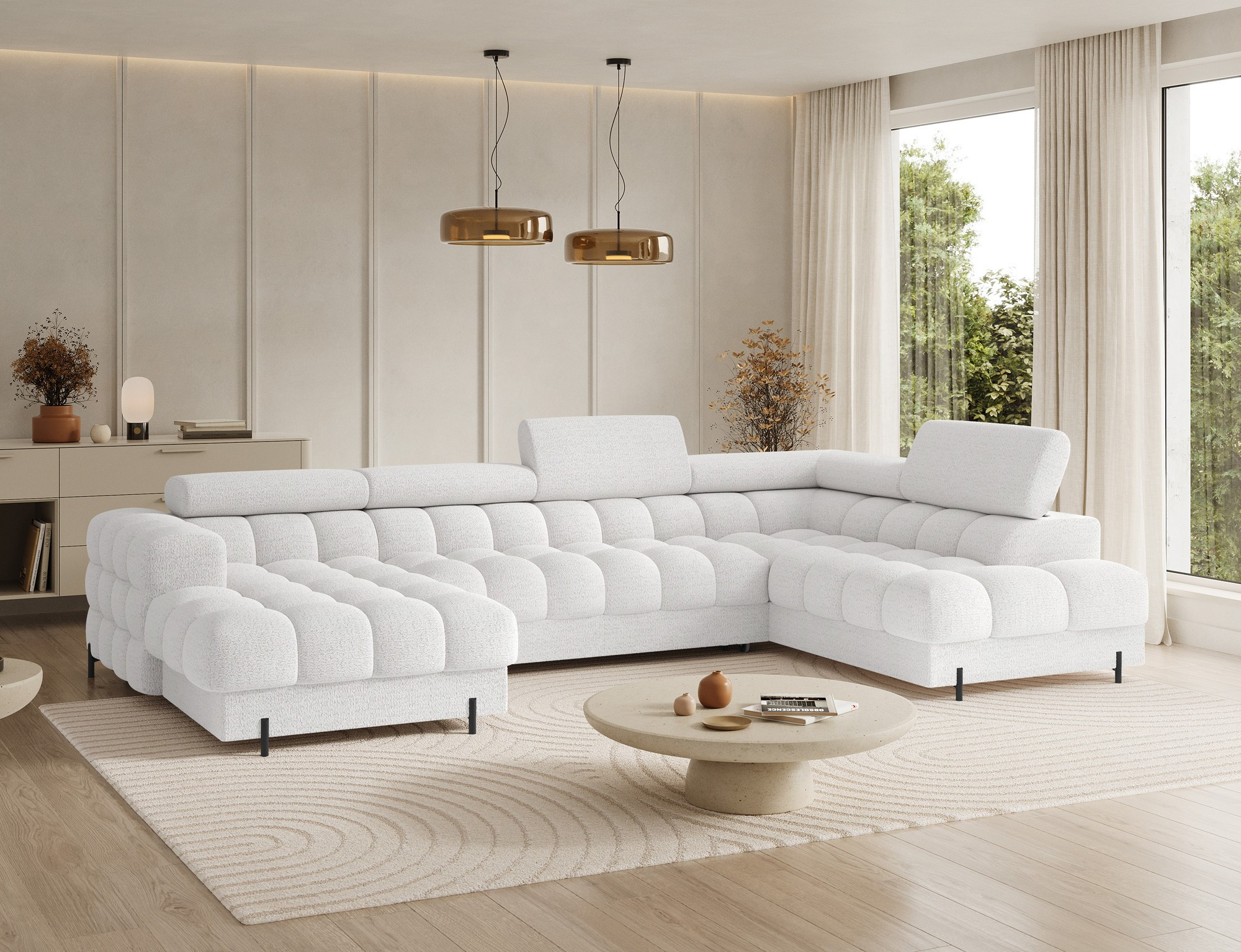 Rohová sedací souprava Feraria je navržena tak, aby se přizpůsobila jakémukoliv interiéru. Její univerzální design a neutrální barevné provedení umožňují snadnou kombinaci s ostatním nábytkem a dekoracemi. Bez ohledu na to, zda preferujete moderní nebo klasický styl, Feraria se stane harmonickou součástí vašeho domova.