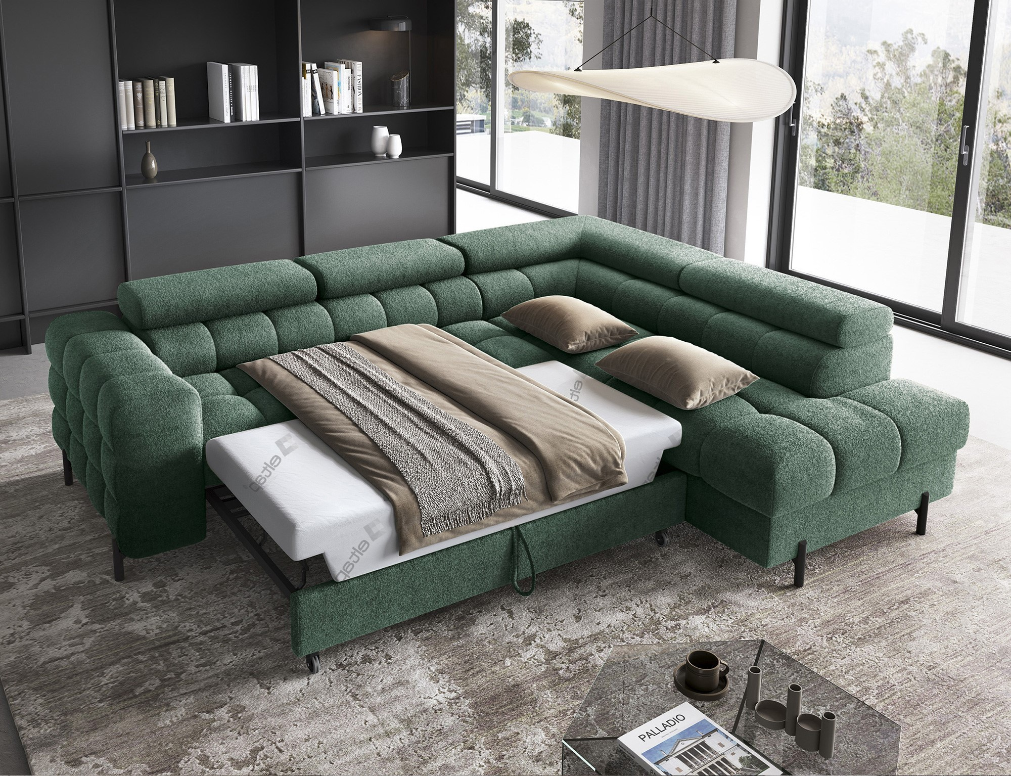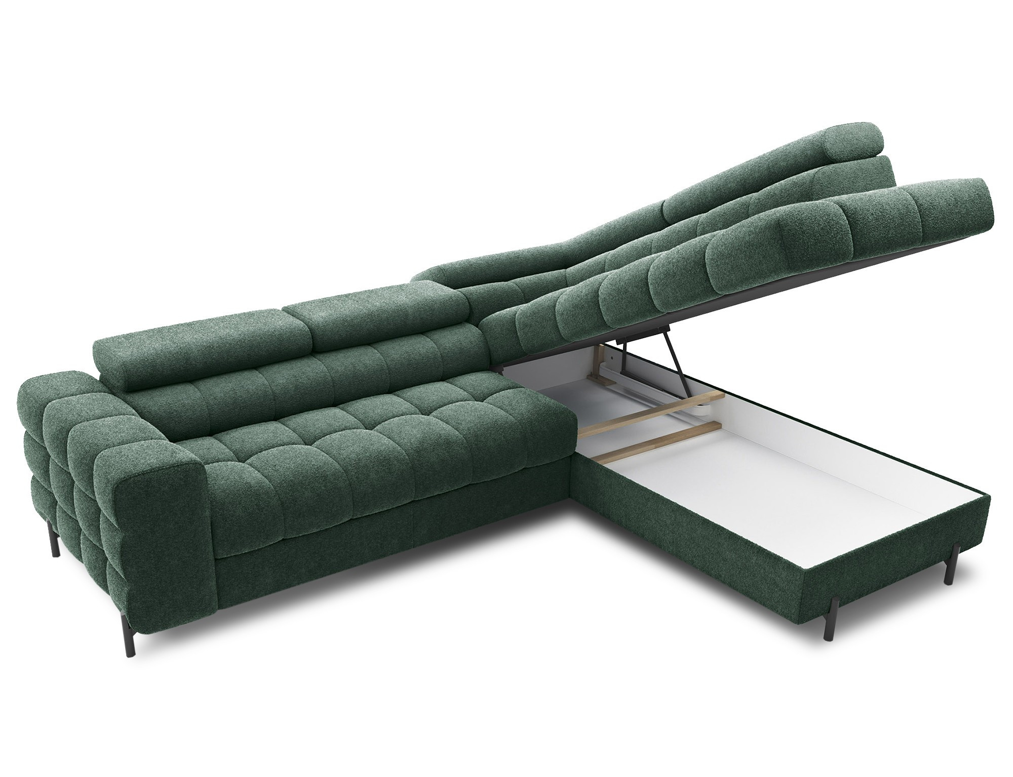 Ferucce je vybavena praktickým úložným prostorem, který vám umožní snadno uskladnit deky, polštáře nebo jiné předměty, které chcete mít po ruce, ale zároveň je mít úhledně uklizené. Tento úložný prostor je nenápadně integrován do designu soupravy, takže nenarušuje její elegantní vzhled.