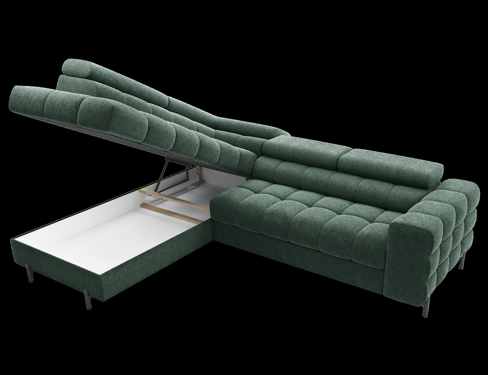 Ferucce je vybavena praktickým úložným prostorem, který vám umožní snadno uskladnit deky, polštáře nebo jiné předměty, které chcete mít po ruce, ale zároveň je mít úhledně uklizené. Tento úložný prostor je nenápadně integrován do designu soupravy, takže nenarušuje její elegantní vzhled.