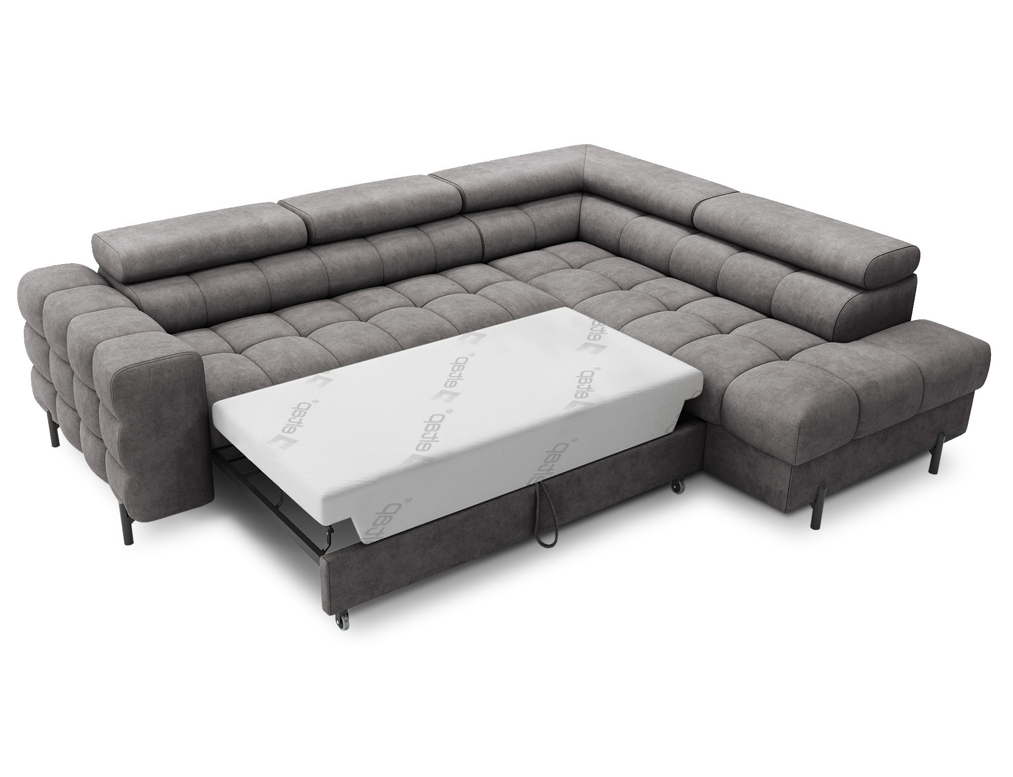 Tato rohová sedací souprava nabízí nejen estetický zážitek, ale také praktické funkce, které oceníte každý den. Díky možnosti rozkládání se snadno promění v pohodlné lůžko s plochou na spaní o rozměrech 123 x 195 cm. To je ideální pro hosty nebo pro chvíle, kdy si chcete dopřát odpočinek.