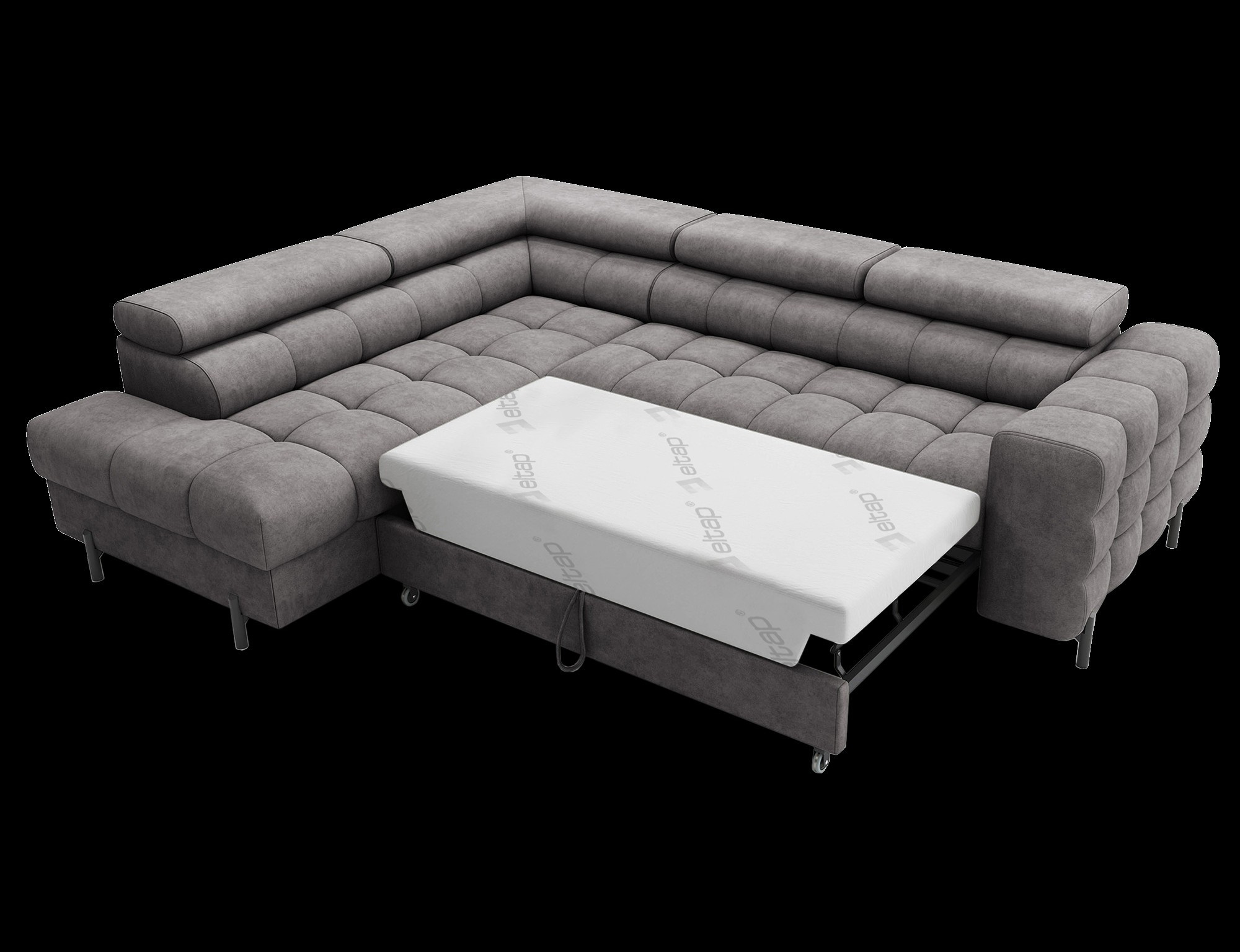 Tato rohová sedací souprava nabízí nejen estetický zážitek, ale také praktické funkce, které oceníte každý den. Díky možnosti rozkládání se snadno promění v pohodlné lůžko s plochou na spaní o rozměrech 123 x 195 cm. To je ideální pro hosty nebo pro chvíle, kdy si chcete dopřát odpočinek.