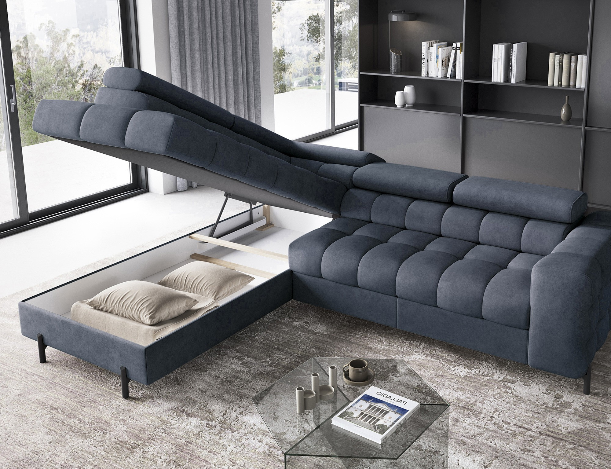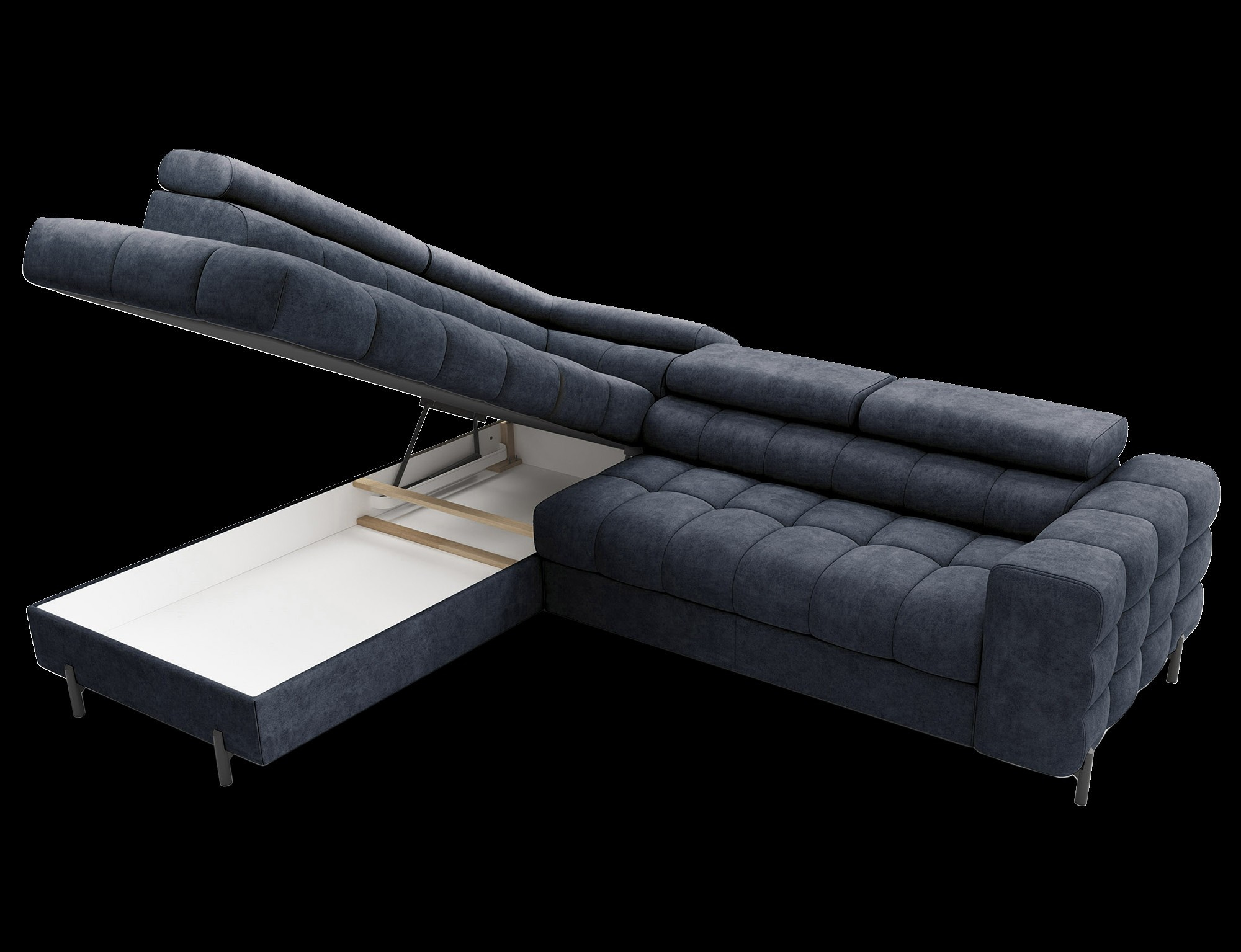 Ferucce je vybavena praktickým úložným prostorem, který vám umožní snadno uskladnit deky, polštáře nebo jiné předměty, které chcete mít po ruce, ale zároveň je mít úhledně uklizené. Tento úložný prostor je nenápadně integrován do designu soupravy, takže nenarušuje její elegantní vzhled.