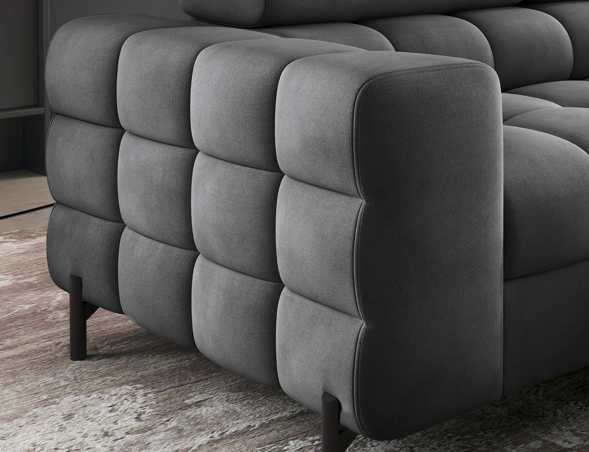 Objevte dokonalou kombinaci stylu, pohodlí a praktičnosti s naší rohovou sedací soupravou FERUCCE. Tato sedací souprava je navržena tak, aby se stala středobodem vašeho obývacího pokoje, a zároveň poskytovala maximální komfort pro vás i vaše hosty.