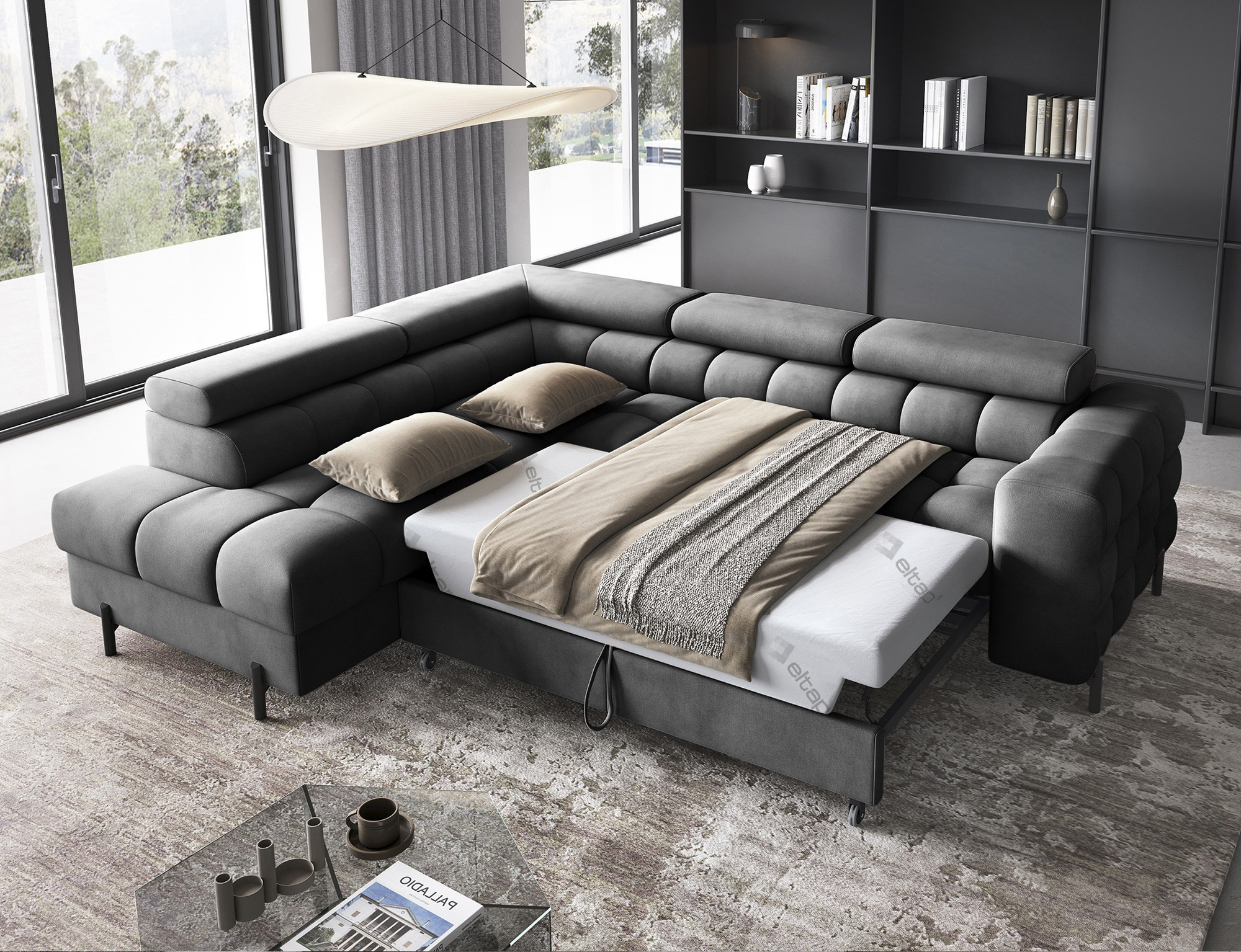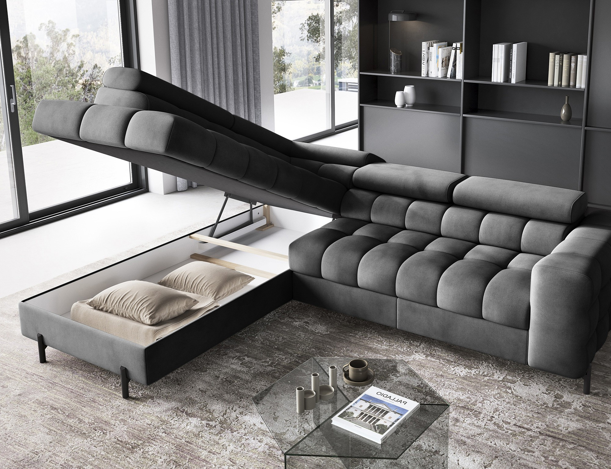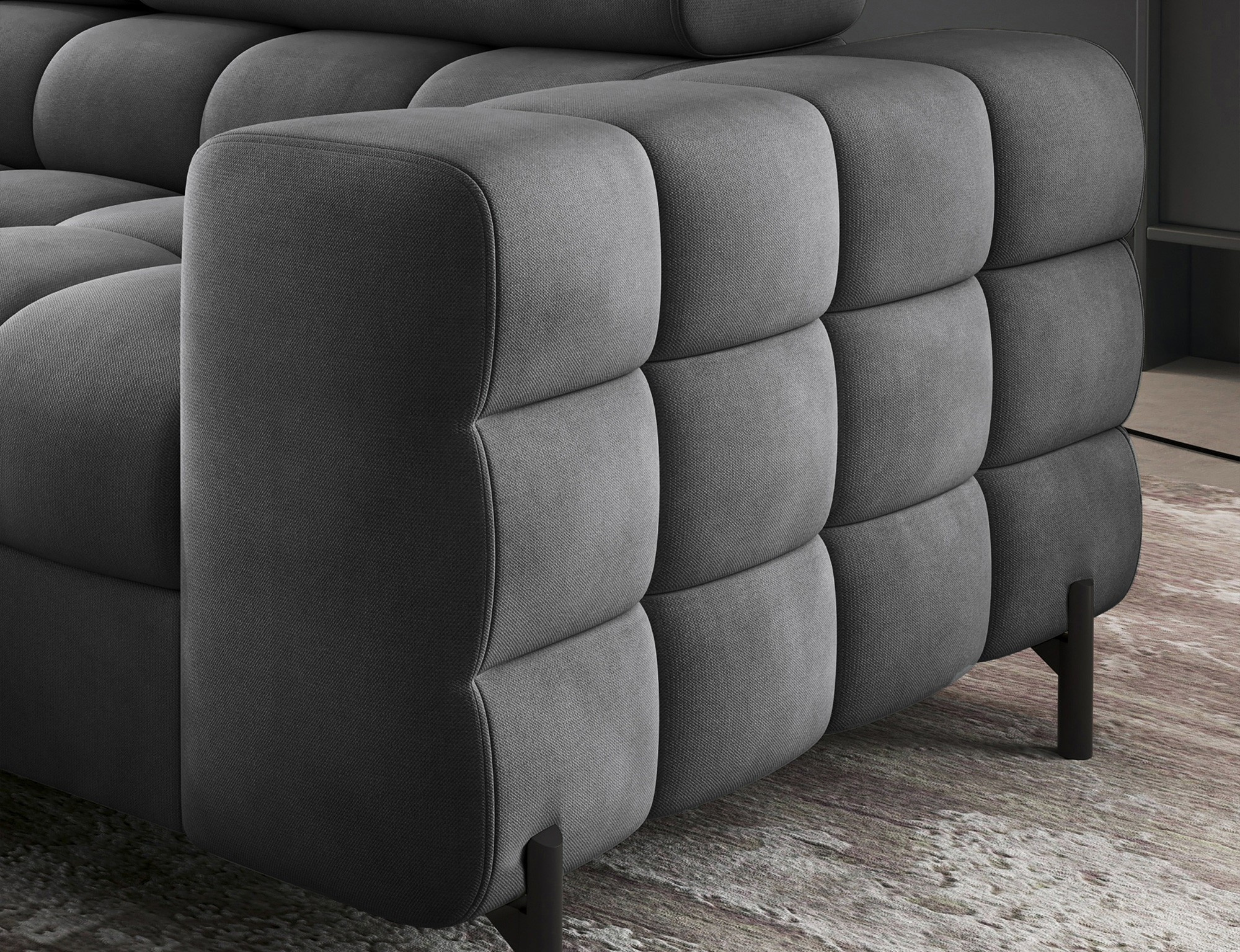 Objevte dokonalou kombinaci stylu, pohodlí a praktičnosti s naší rohovou sedací soupravou FERUCCE. Tato sedací souprava je navržena tak, aby se stala středobodem vašeho obývacího pokoje, a zároveň poskytovala maximální komfort pro vás i vaše hosty.