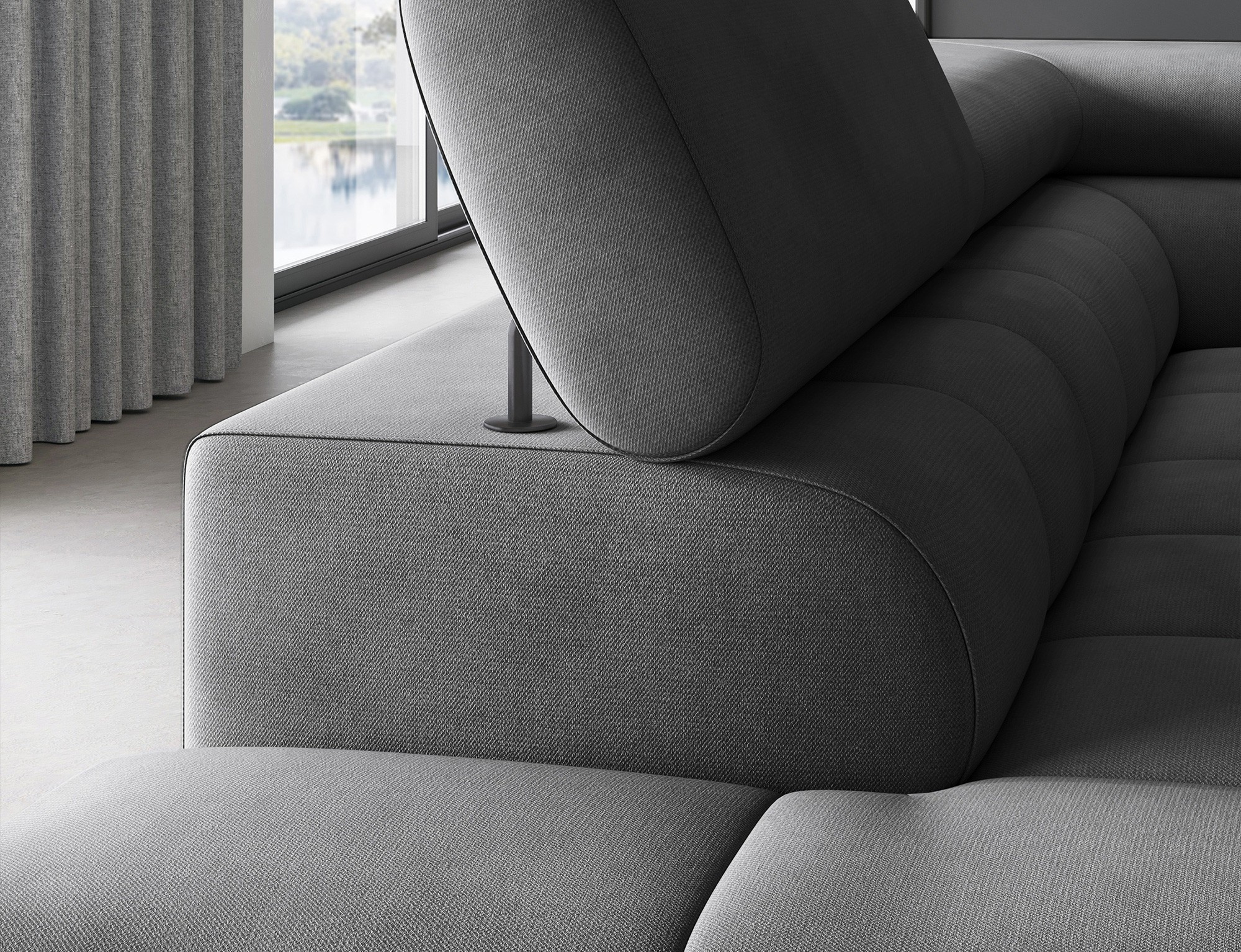 S rozměry 276 cm na šířku, 93 cm na výšku se zvednutými opěrkami hlavy a 72 cm s spuštěnými a 200 cm na hloubku nabízí sedací souprava FERUCCE dostatek prostoru pro celou rodinu. Výška sedu 44 cm zajišťuje pohodlné sezení, které oceníte při každodenním odpočinku nebo sledování oblíbených filmů.
