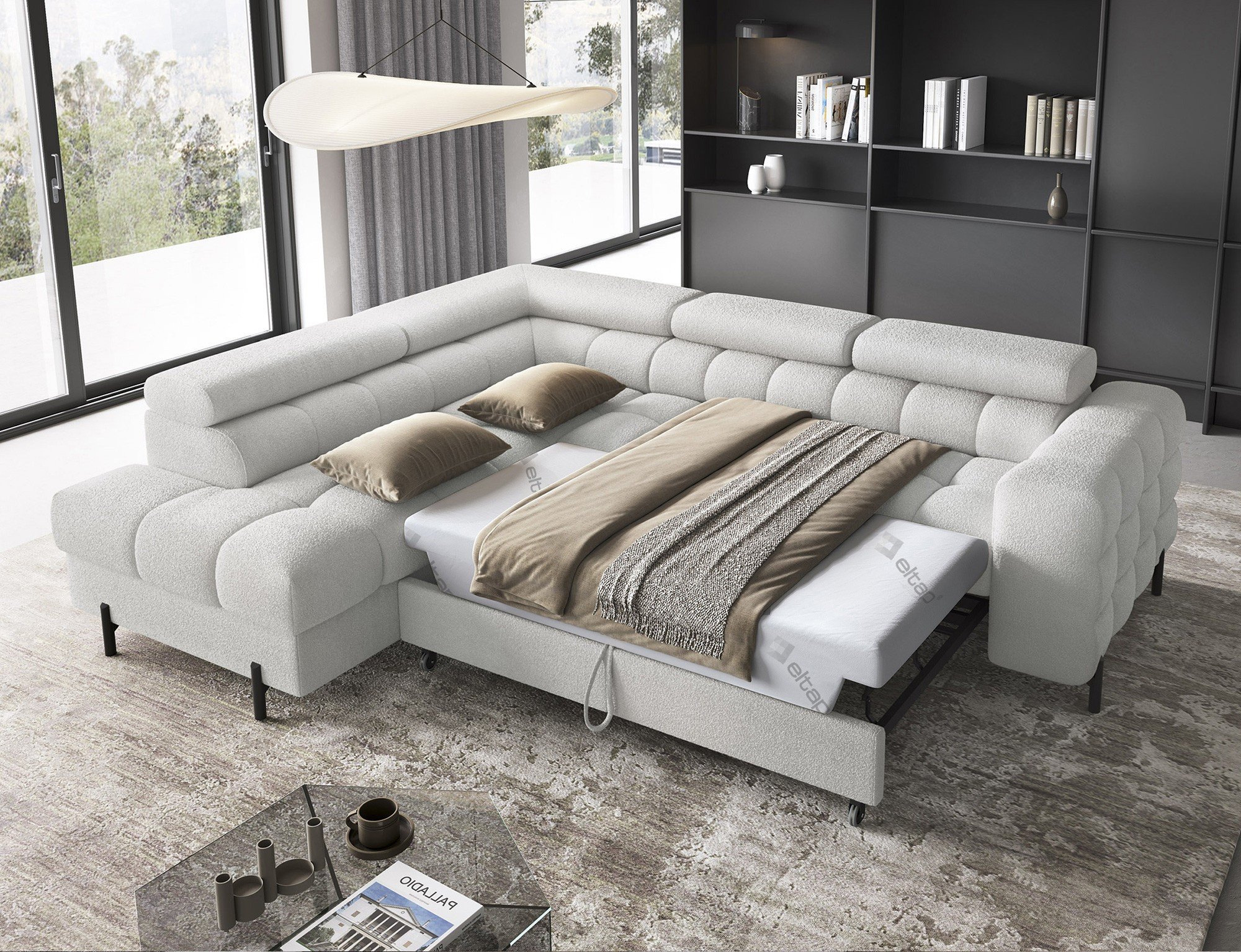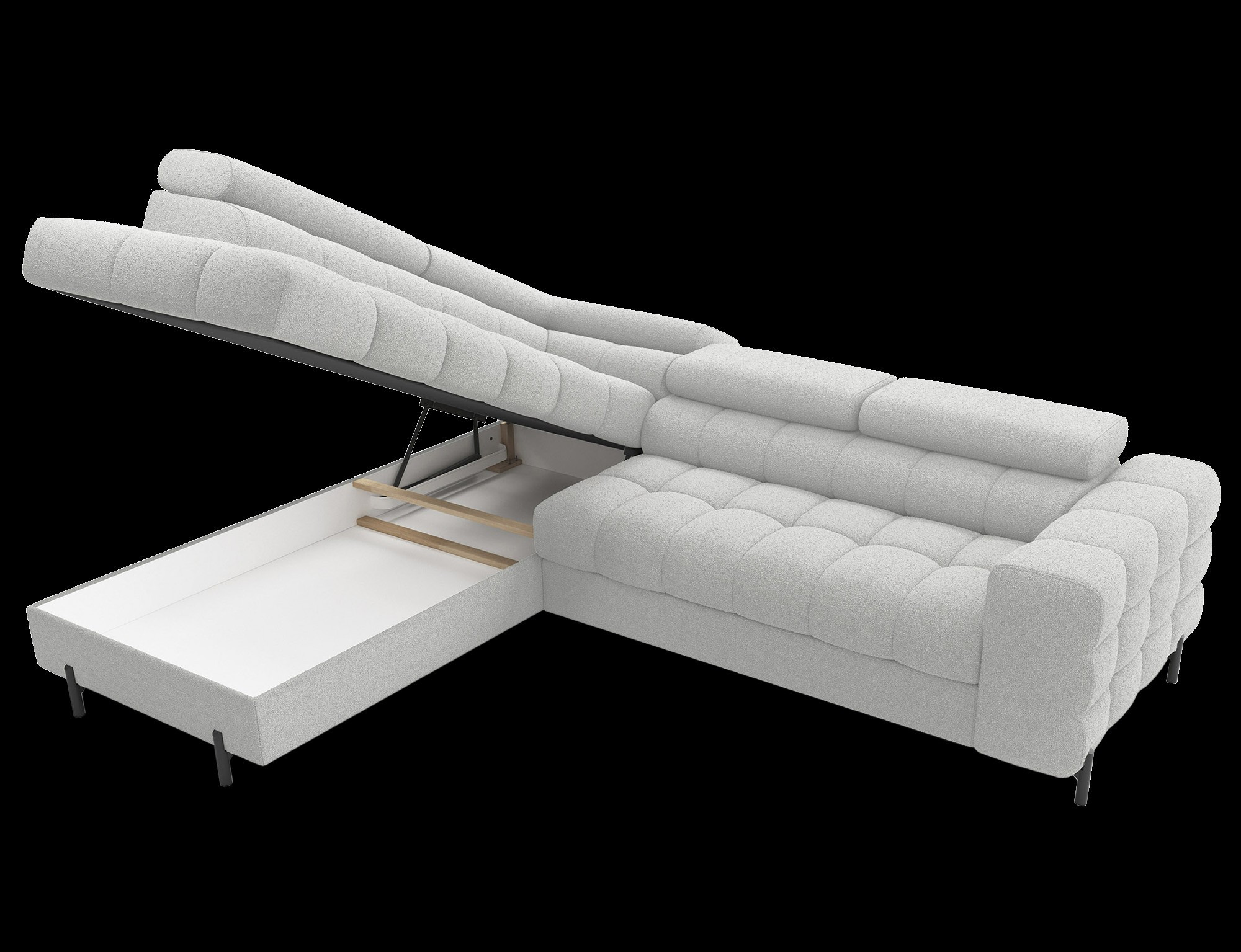 Ferucce je vybavena praktickým úložným prostorem, který vám umožní snadno uskladnit deky, polštáře nebo jiné předměty, které chcete mít po ruce, ale zároveň je mít úhledně uklizené. Tento úložný prostor je nenápadně integrován do designu soupravy, takže nenarušuje její elegantní vzhled.