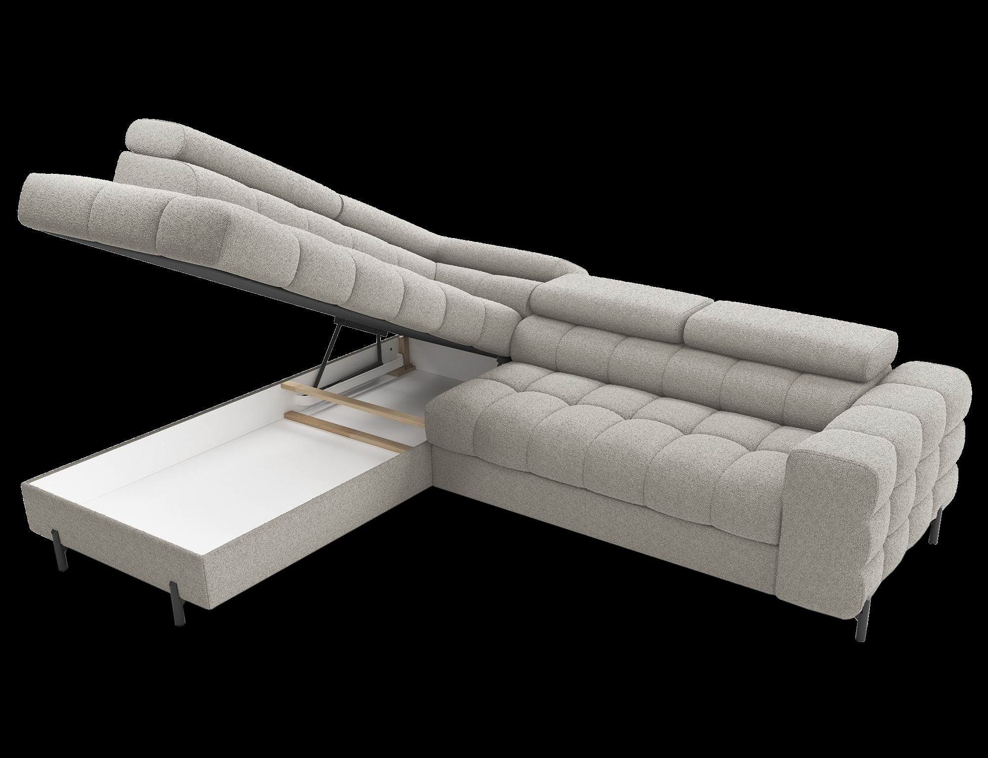 Ferucce je vybavena praktickým úložným prostorem, který vám umožní snadno uskladnit deky, polštáře nebo jiné předměty, které chcete mít po ruce, ale zároveň je mít úhledně uklizené. Tento úložný prostor je nenápadně integrován do designu soupravy, takže nenarušuje její elegantní vzhled.