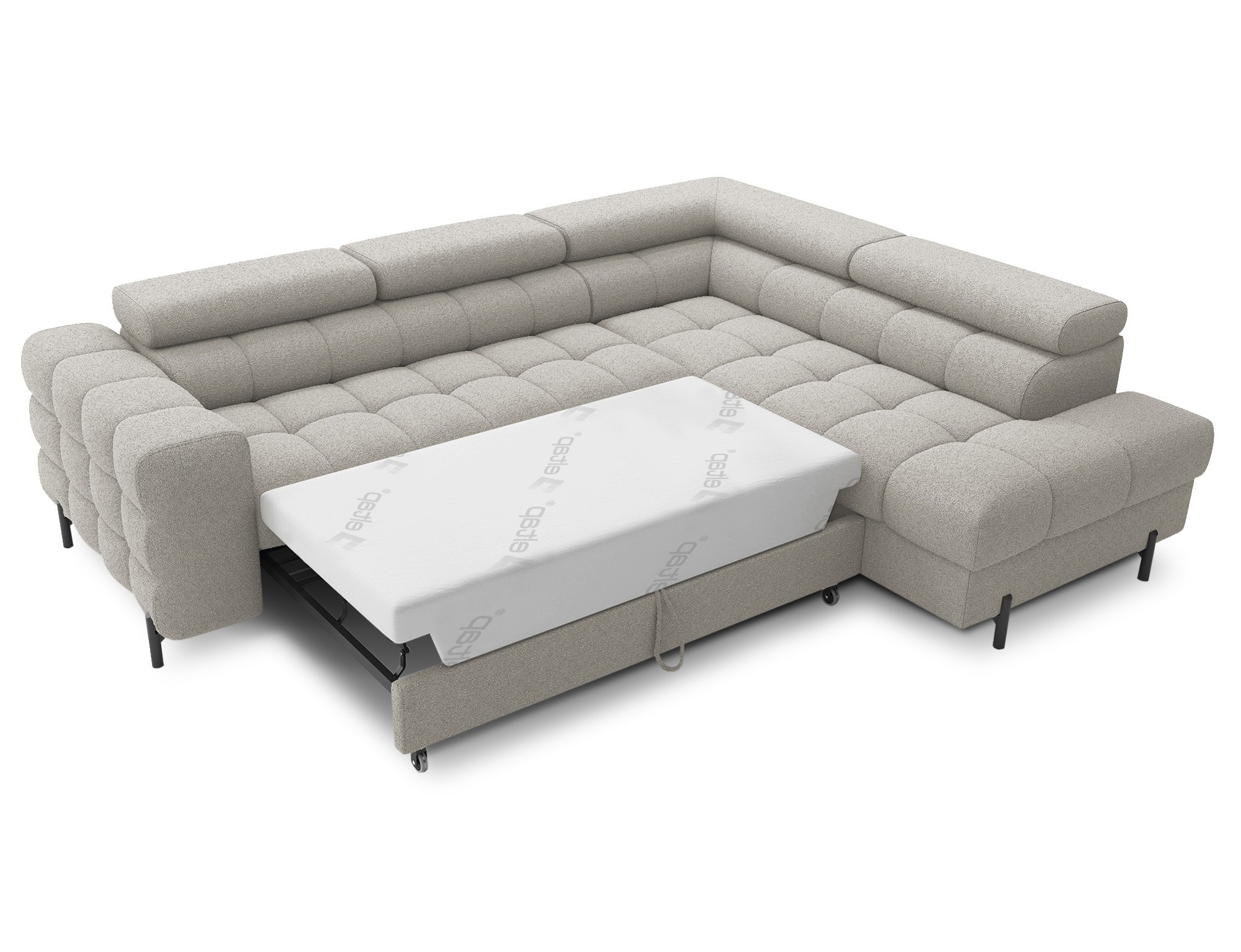 Tato rohová sedací souprava nabízí nejen estetický zážitek, ale také praktické funkce, které oceníte každý den. Díky možnosti rozkládání se snadno promění v pohodlné lůžko s plochou na spaní o rozměrech 123 x 195 cm. To je ideální pro hosty nebo pro chvíle, kdy si chcete dopřát odpočinek.