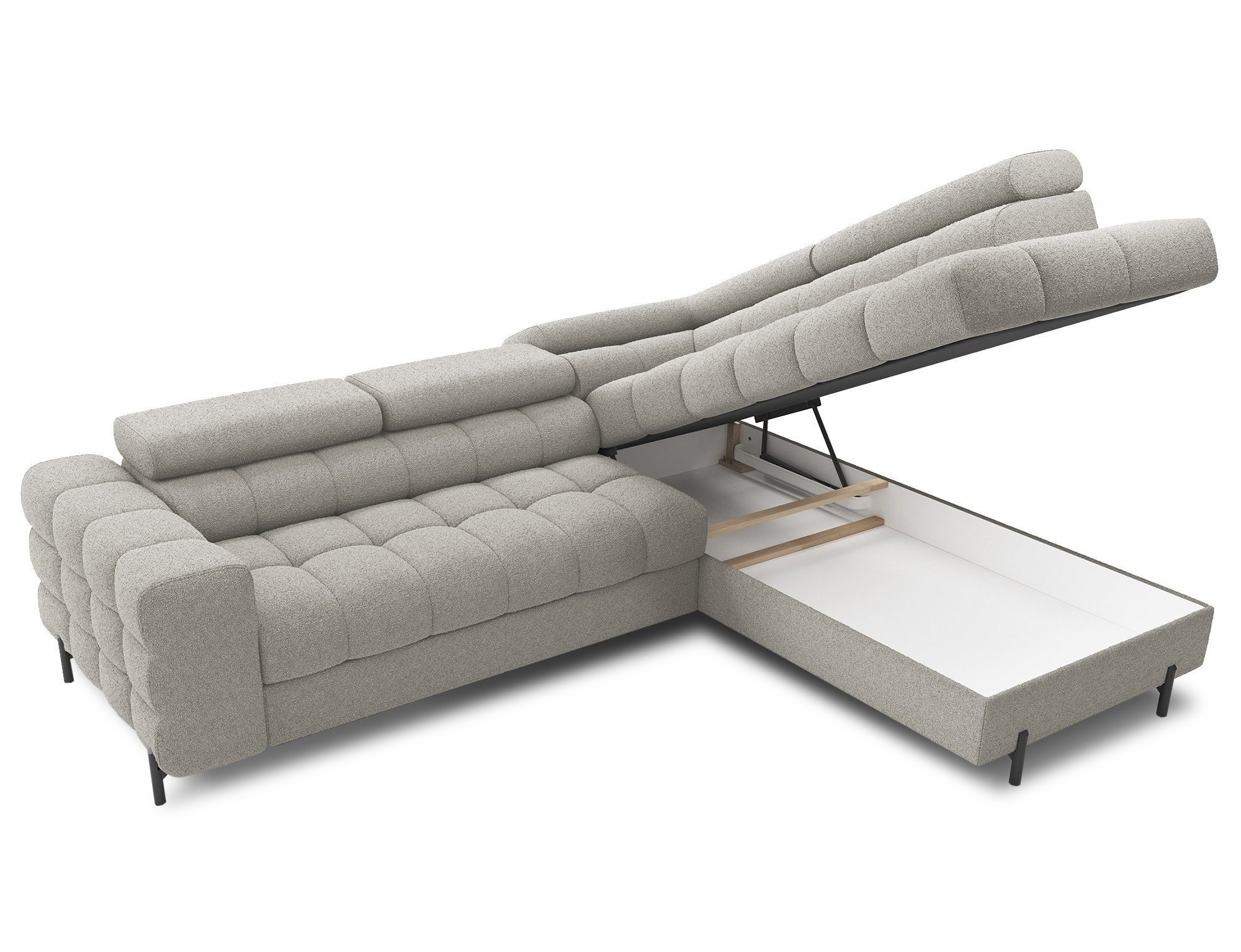 Ferucce je vybavena praktickým úložným prostorem, který vám umožní snadno uskladnit deky, polštáře nebo jiné předměty, které chcete mít po ruce, ale zároveň je mít úhledně uklizené. Tento úložný prostor je nenápadně integrován do designu soupravy, takže nenarušuje její elegantní vzhled.
