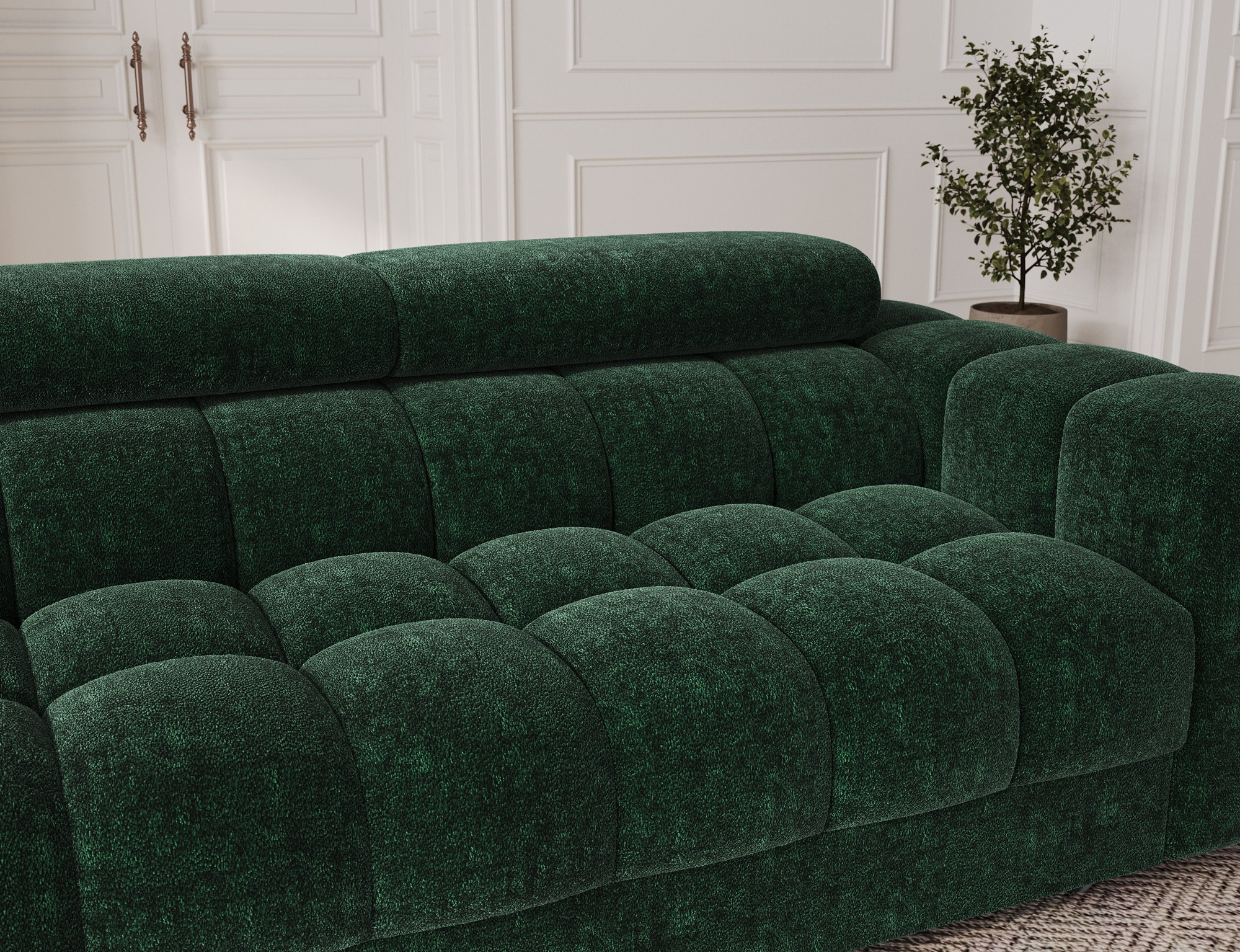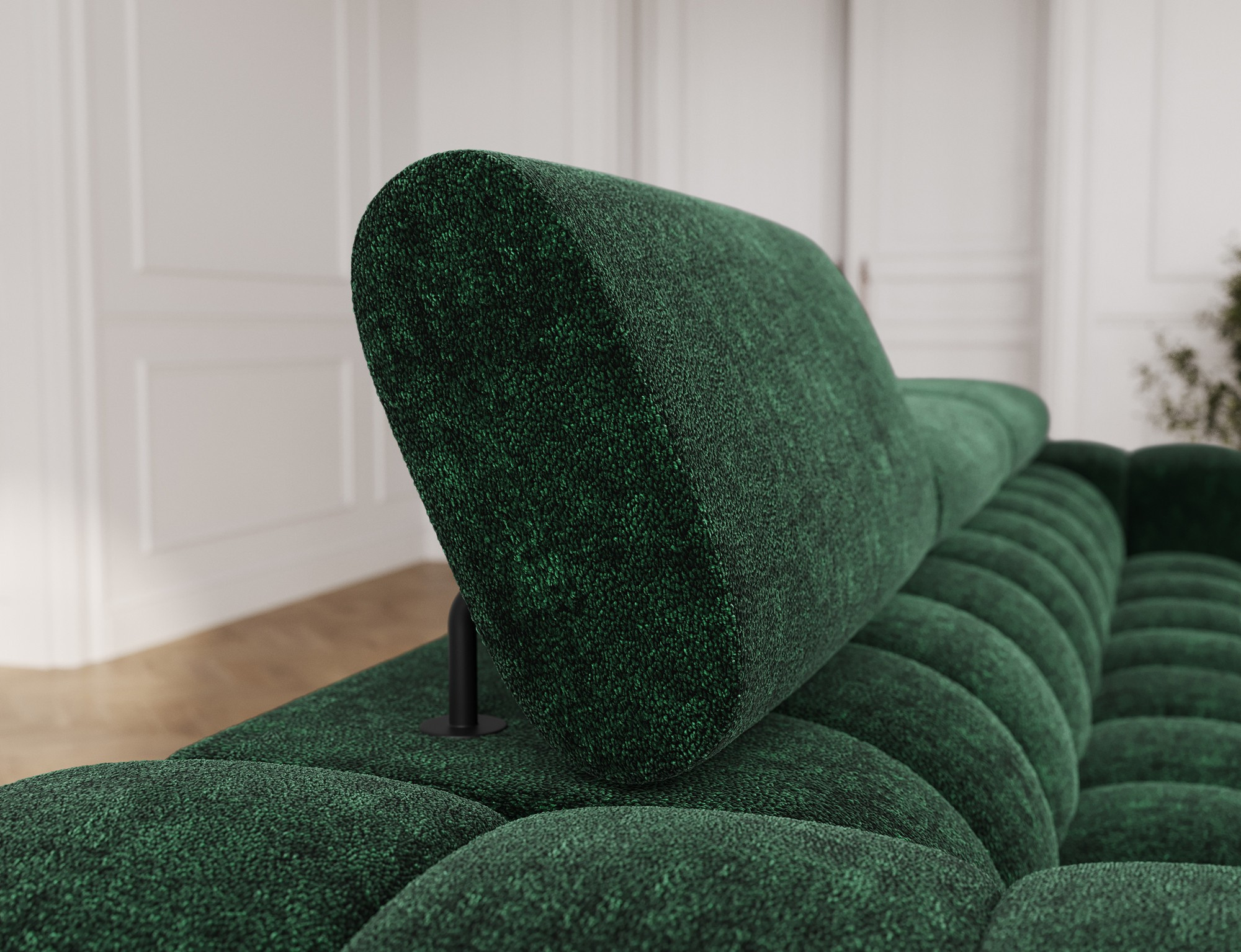 Sedací část pohovky je vyrobena z pružin typu Falista a je doplněna o polyuretanovou pěnu T3030 a HR 3030, což zajišťuje optimální pohodlí a podporu. Opěrná část je vyplněna polyuretanovou pěnou T2130, která poskytuje měkkou, ale pevnou oporu pro vaše záda. Polohovatelné opěrky hlavy umožňují přizpůsobit si pohovku přesně podle vašich potřeb a přání.