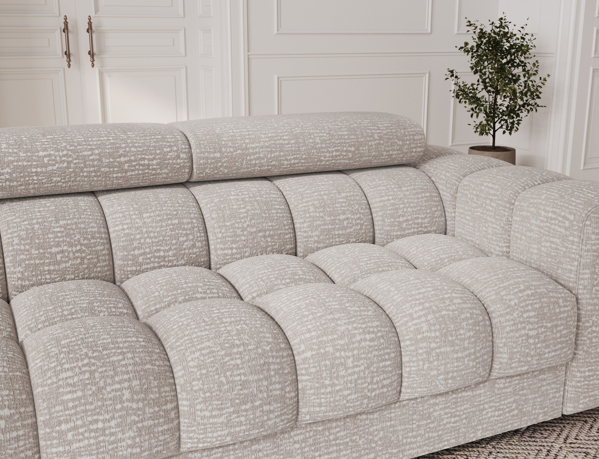Sedací část pohovky je vyrobena z pružin typu Falista a je doplněna o polyuretanovou pěnu T3030 a HR 3030, což zajišťuje optimální pohodlí a podporu. Opěrná část je vyplněna polyuretanovou pěnou T2130, která poskytuje měkkou, ale pevnou oporu pro vaše záda. Polohovatelné opěrky hlavy umožňují přizpůsobit si pohovku přesně podle vašich potřeb a přání.