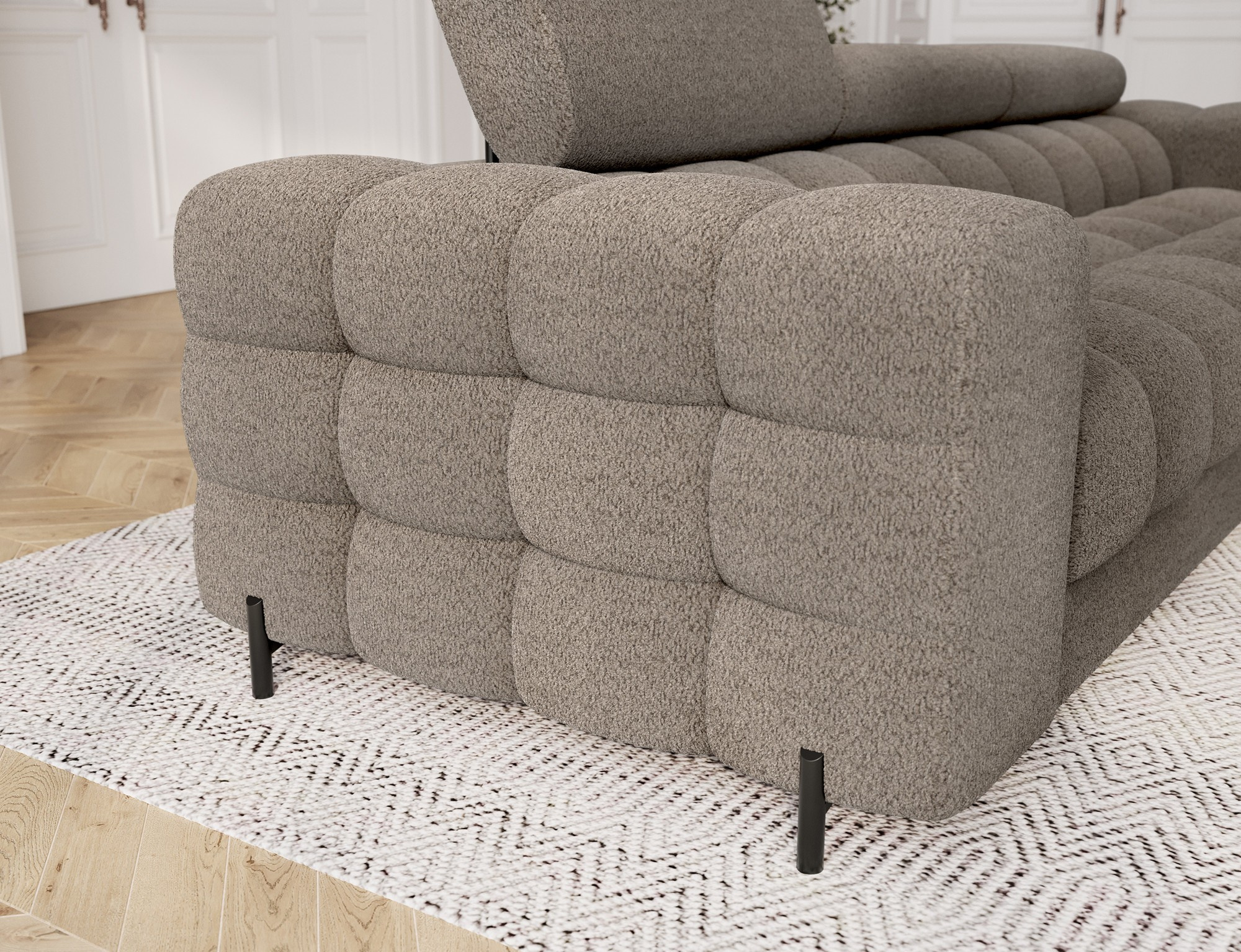 Sedací část pohovky je vyrobena z pružin typu Falista a je doplněna o polyuretanovou pěnu T3030 a HR 3030, což zajišťuje optimální pohodlí a podporu. Opěrná část je vyplněna polyuretanovou pěnou T2130, která poskytuje měkkou, ale pevnou oporu pro vaše záda. Polohovatelné opěrky hlavy umožňují přizpůsobit si pohovku přesně podle vašich potřeb a přání.
