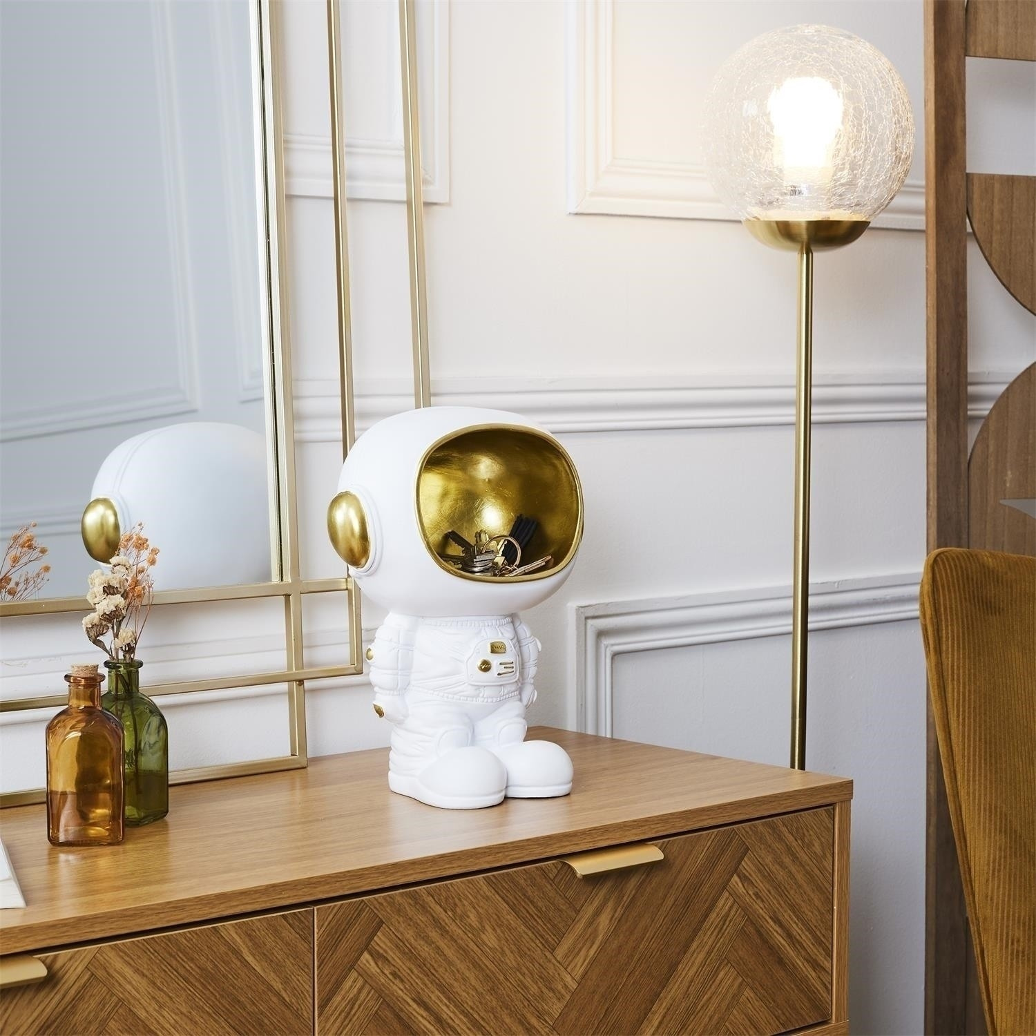 Figurka organizér ve tvaru astronauta je originální dekorace, která dodá šmrnc naší aranžaci předsíně nebo pokoje teenagera. Figurka zcela vyrobená z odolného a tvrdého poliresinu bude ideálním místem na klíče od domu nebo klíče od auta. Figurka díky zlatým prvkům je mimořádně dekorativní.