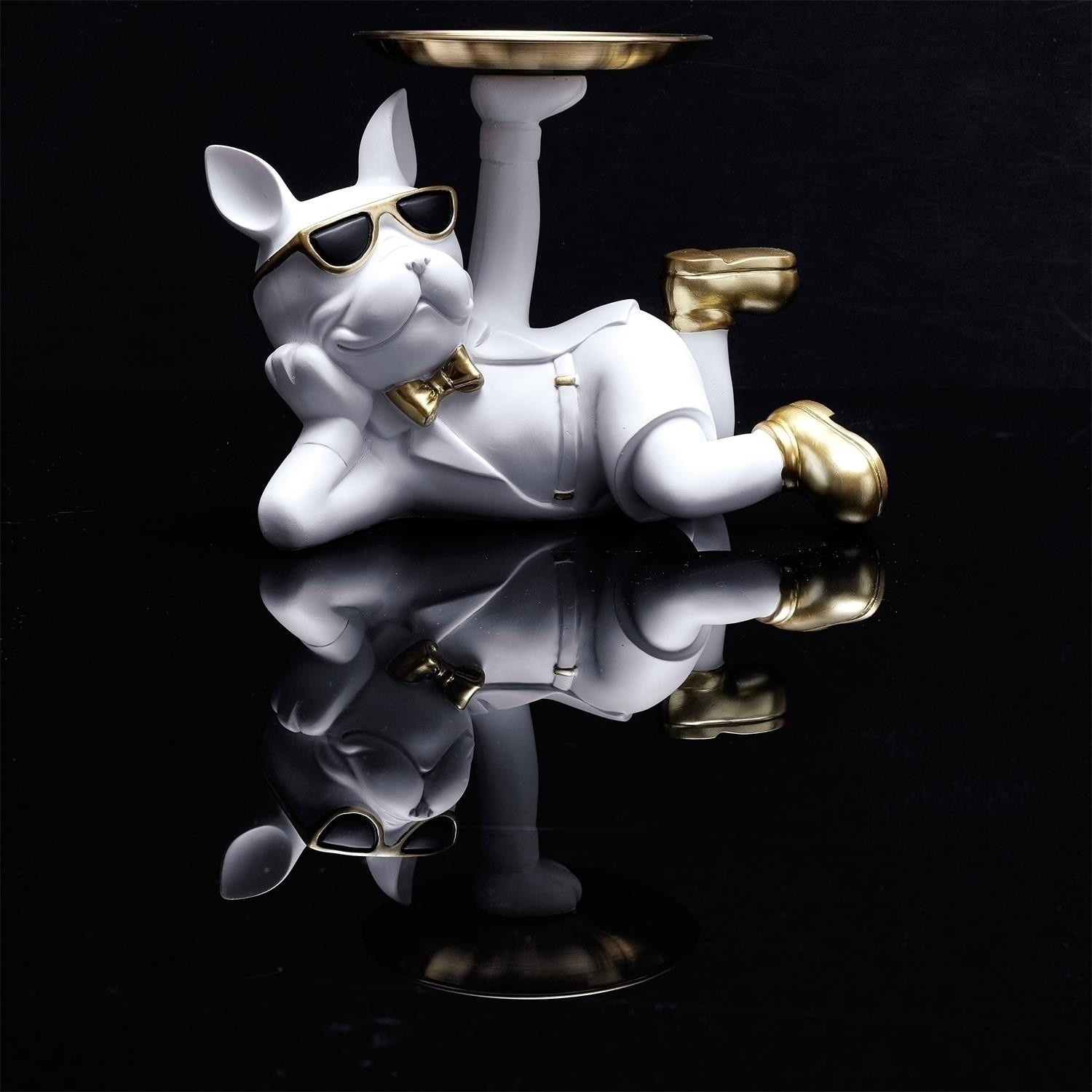 Figurka Buldok ležící s bílým podnosem