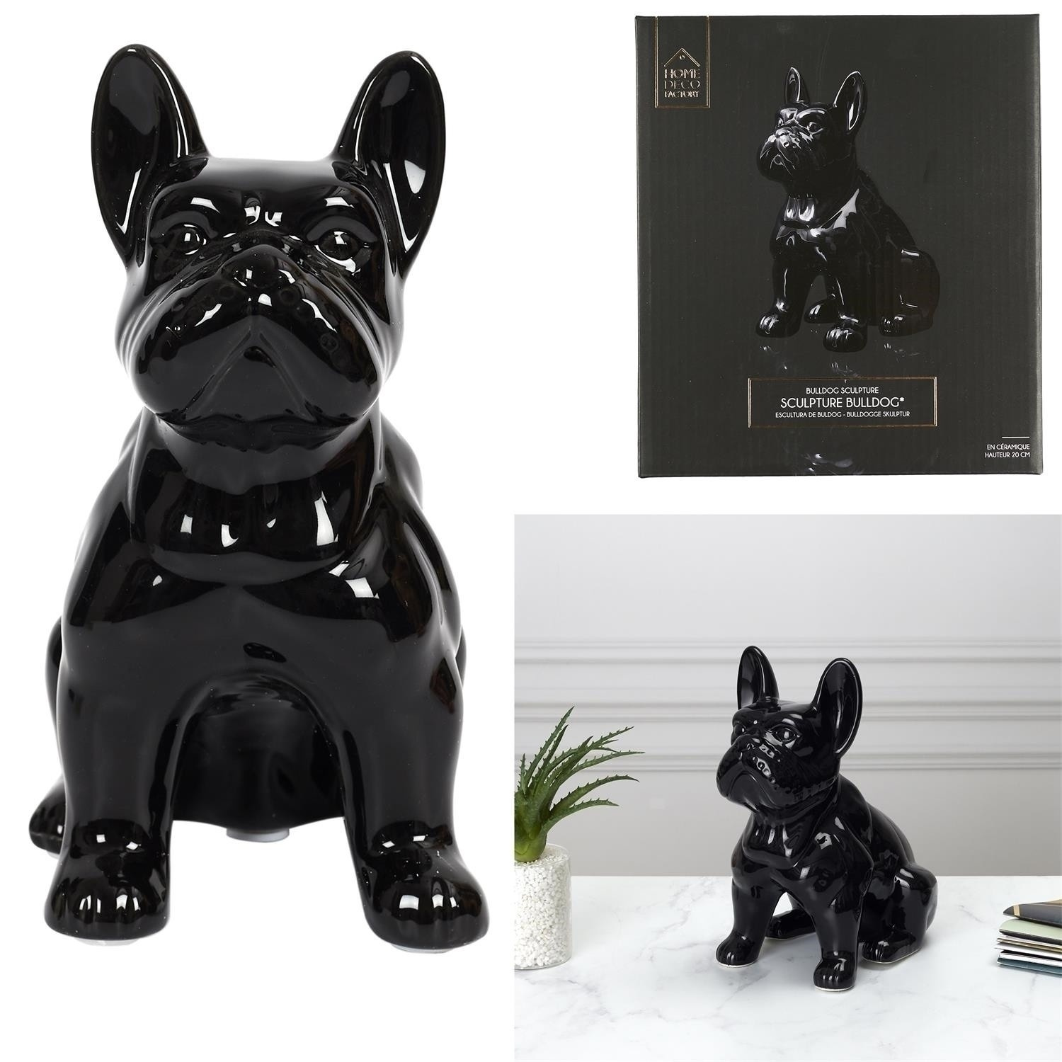 Figurka psa plemene Buldoček je módní prvek dekorace interiéru. Černá keramická figurka představuje sedícího psa s vesele vztyčenýma ušima.Figurka dokončená do vysokého lesku. Rozměry balení: 45x2x47,5 cm