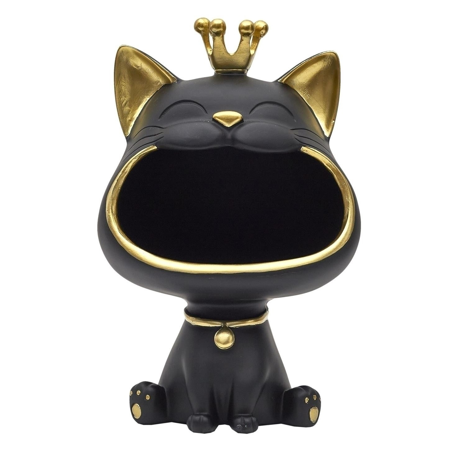 Elegantní figurka kočky v odstínech bílé a zlaté, která spojuje estetiku s funkčností. Kromě plnění role stylové dekorace má skrytý prostor pro ukládání drobných předmětů. Ideální k ozdobení police, stolku nebo psacího stolu, přidává kouzlo a pořádek v jednom. Délka produktu: 16 cm Výška produktu: 25,5 cm Hloubka produktu: 13,5 cm Materiál: Polyresin
