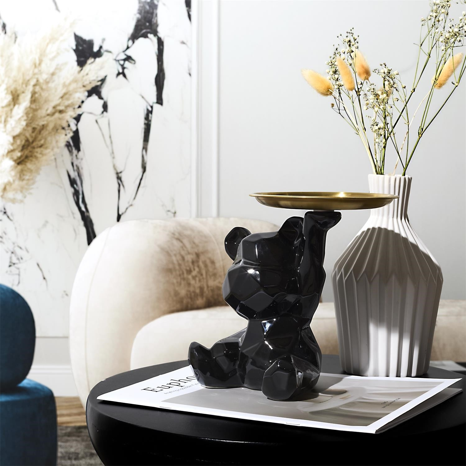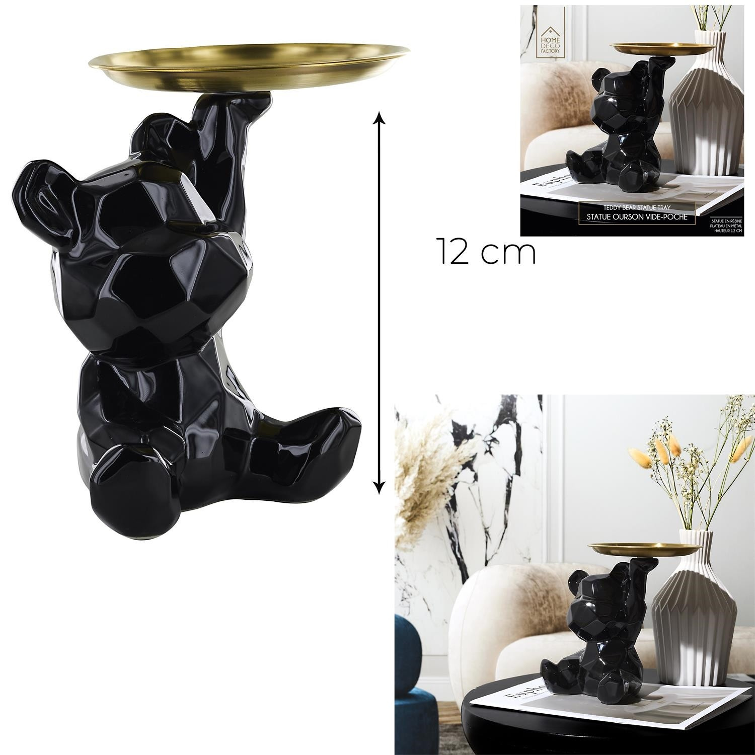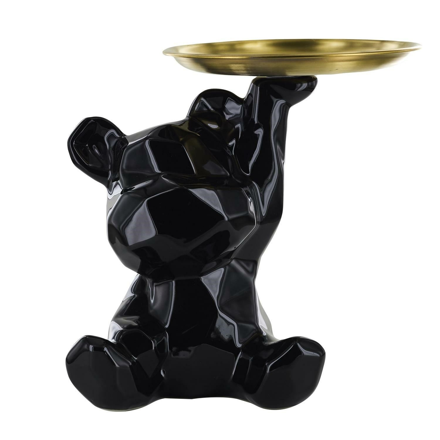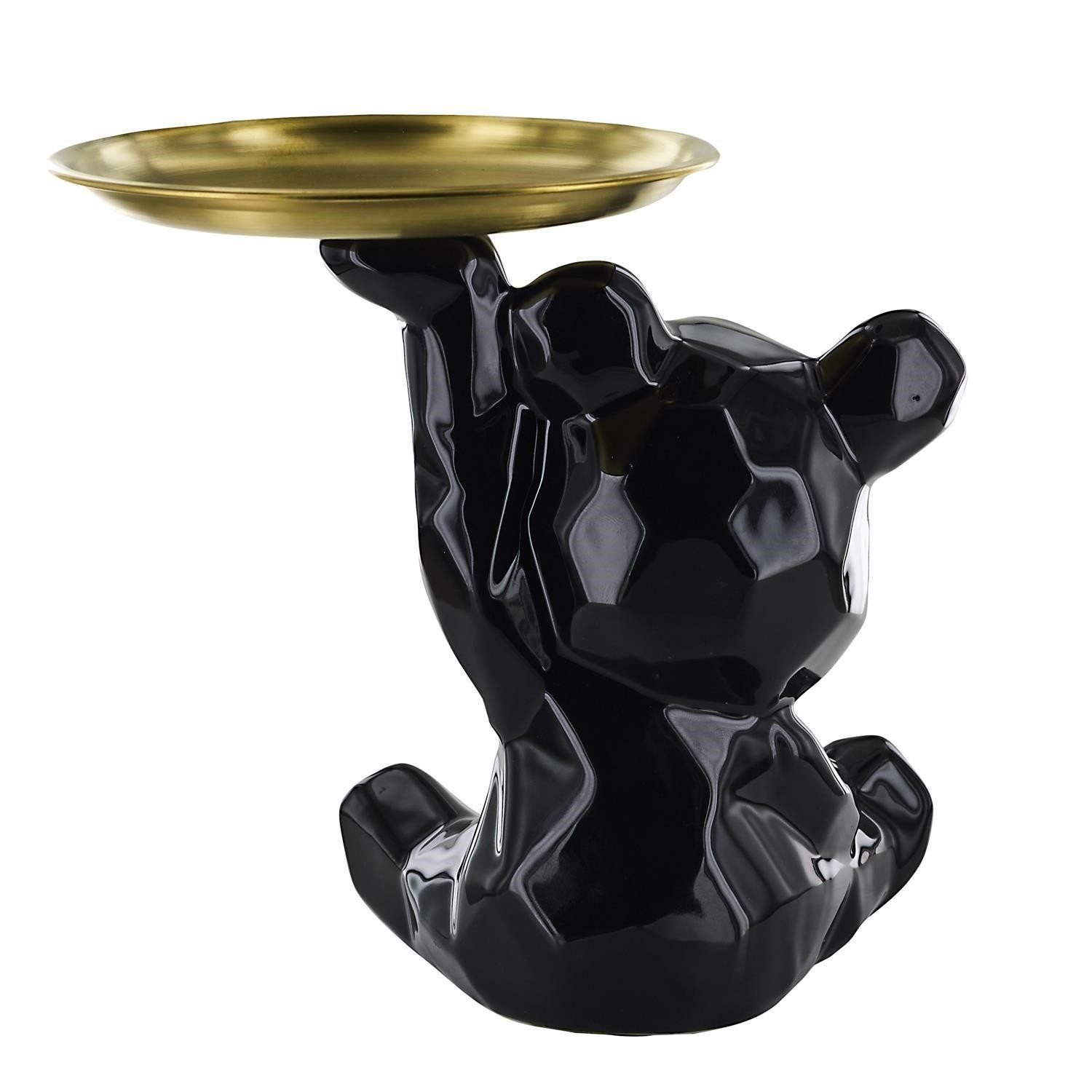 Keramická figurka připomínající medvídka se zlatým, kovovým podnosem je ideálním dekorativním prvkem, který také udělá pořádek s klíči nebo jinými drobnými předměty.