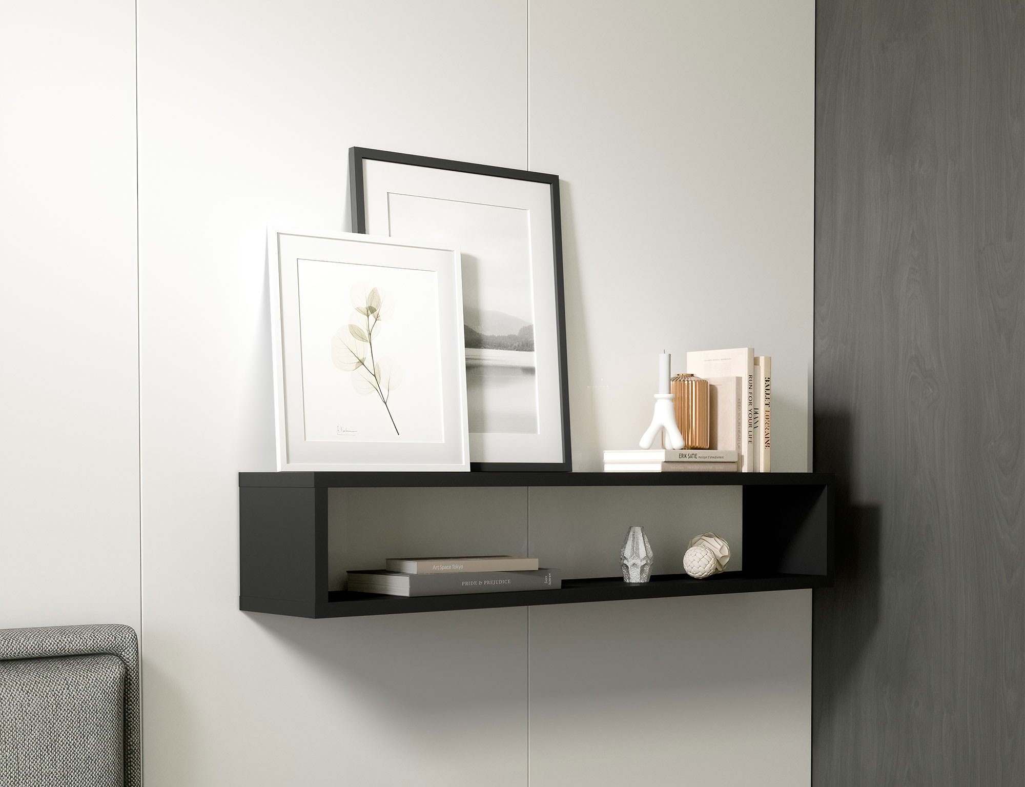 Závěsná police Finees je elegantní a praktický interiérový prvek, který se dokonale hodí do každé místnosti. S rozměry 80 cm na délku, 15 cm na výšku a 15 cm do hloubky nabízí ideální řešení pro ukládání a vystavování různých předmětů. Její kompaktní velikost činí polici Finees ideální pro montáž na zeď v obývacím pokoji, ložnici, kuchyni nebo chodbě. Minimalistický design umožňuje, aby se bez problémů začlenil do moderních interiérů, čímž přidává nádech lehkosti a funkčnosti. Polička je ideální pro uložení knih, dekorací, malých rostlin a dalších drobných předmětů, které chcete mít po ruce nebo vystavit. Polička Finees je robustně zkonstruována a snadno se instaluje, což zajišťuje její trvanlivost a stabilitu během používání. Jeho jednoduchá forma a univerzální styl z něj činí nejen praktický, ale také esteticky příjemný doplněk do vašeho domova.