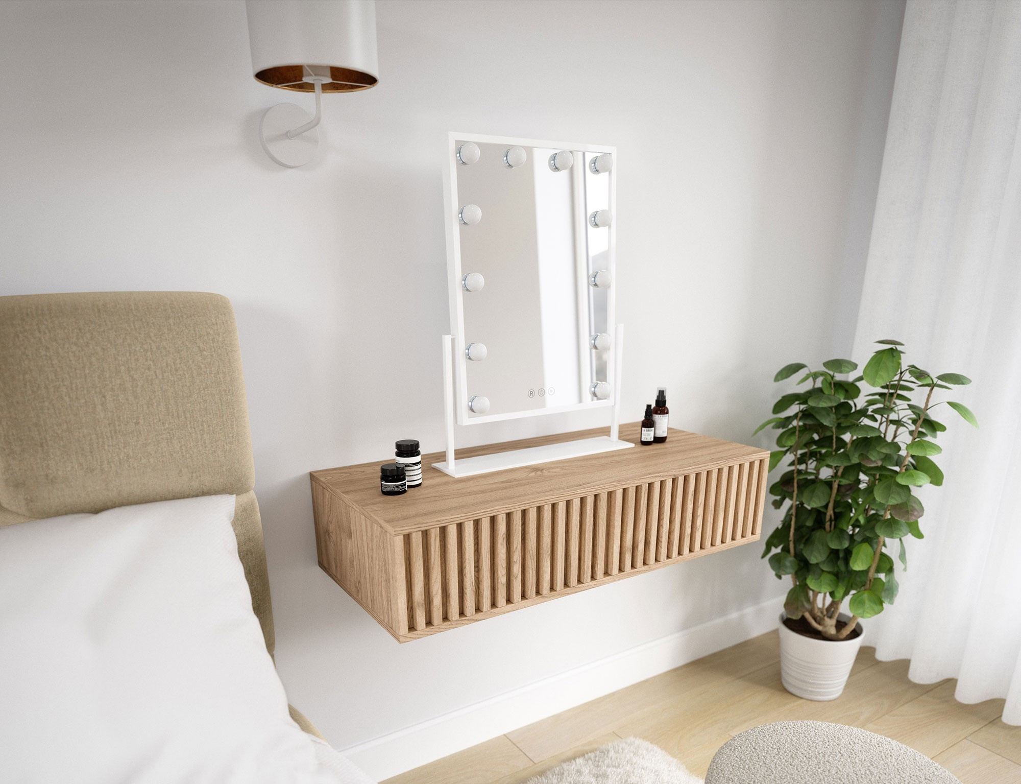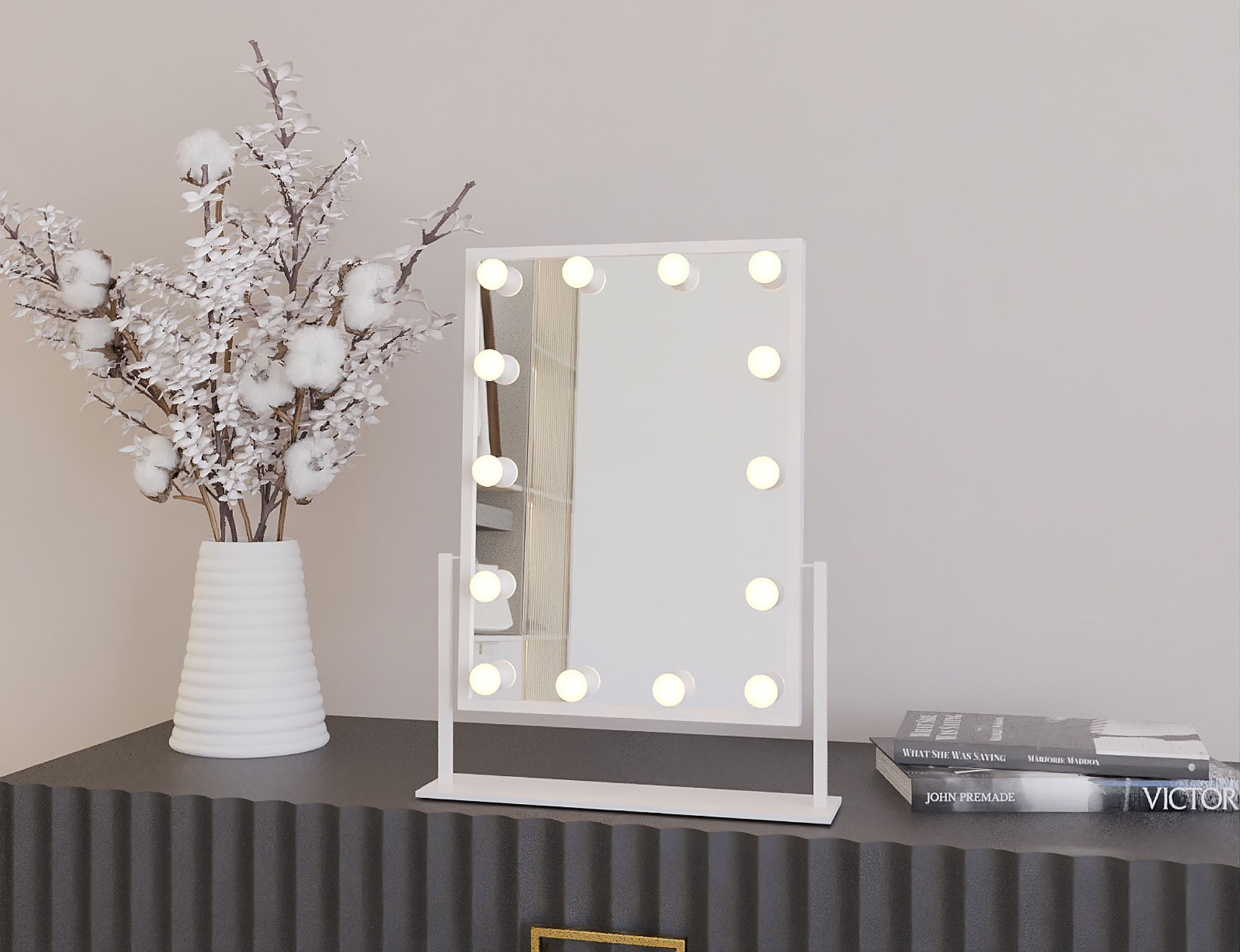 Volně stojící zrcadlo Flamnate, rozměry 30x47.5x2.5 cm, je bílé barvy a je vybaveno LED osvětlením, které poskytuje rovnoměrné osvětlení kolem zrcadla. Díky svému samostatně stojícímu designu nevyžaduje montáž na stěnu a lze jej snadno přemístit na různá místa v místnosti. S hmotností 5.12 kg, je přenosný a snadno se přenáší. Tento elegantní a praktický kus nábytku lze použít v ložnici, koupelně nebo chodbě, čímž přidává funkčnost a estetický nádech interiéru. Zrcadlo je napájeno 12V, 1A napájecím adaptérem.