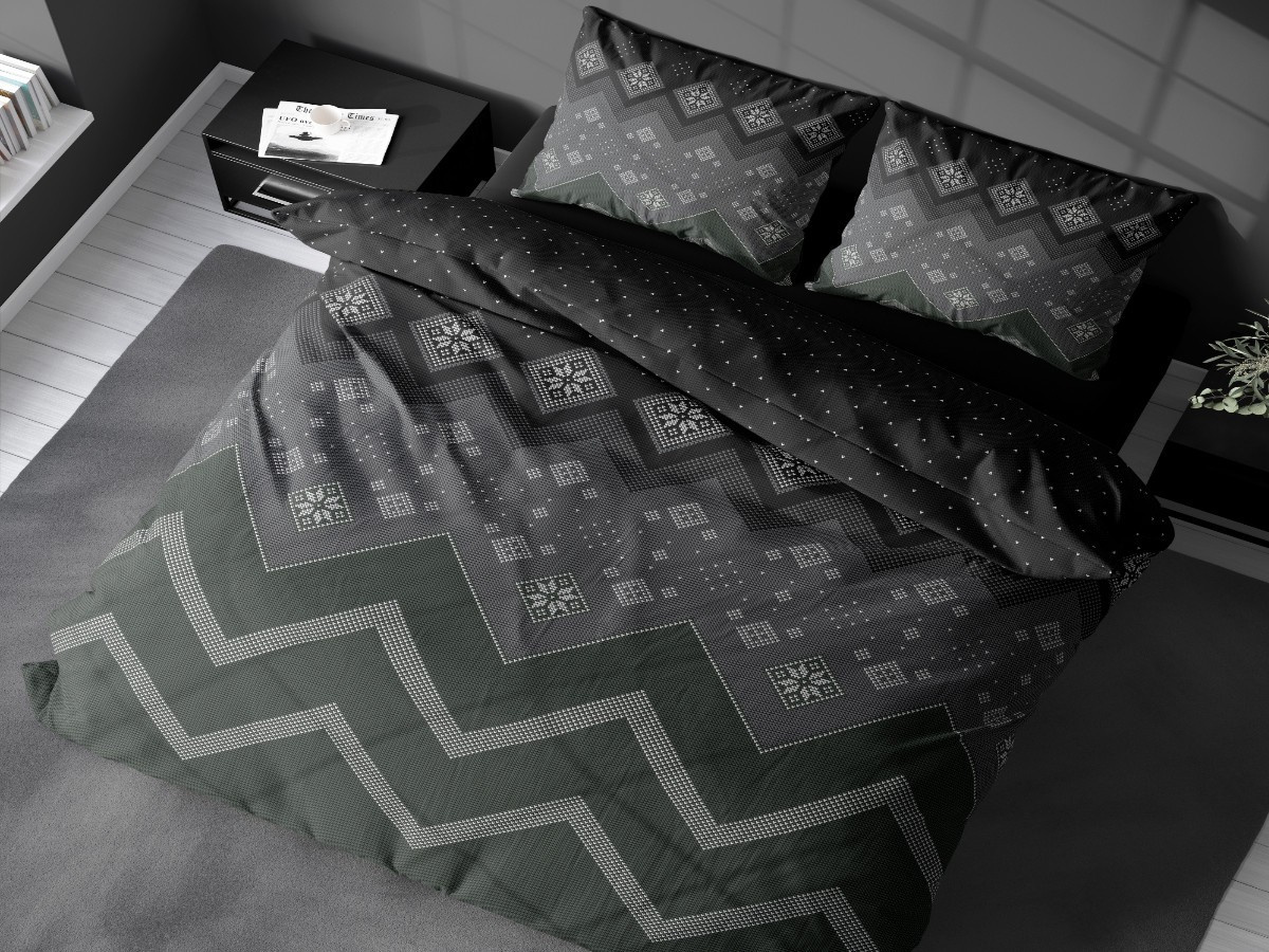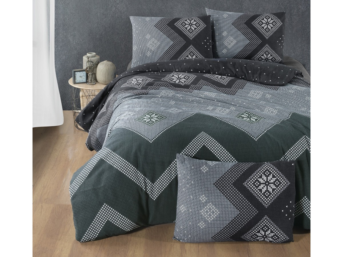 Flanelové francouzské povlečení 240x200, 70x90 Scandinavia green