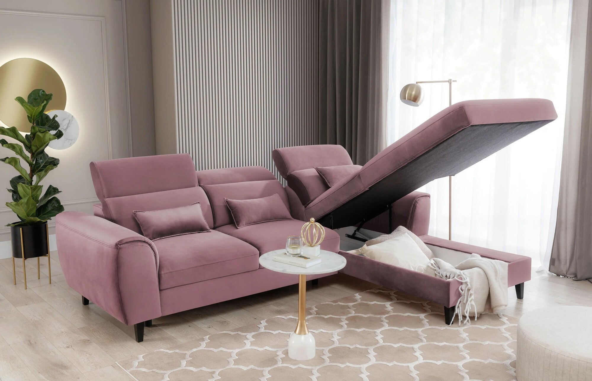 Rohová pohovka Foble s funkcí spaní a úložným prostorem