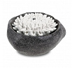 Fontána s LED osvětlením - polyresin, černá, dekor kámen a bílý květ