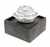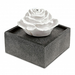 Zahradní fontána ve tvaru květu růže. Je vyrobena z polyresinu v dekoru černý kámen granit a polyresinový květ v dekoru bílého písku. Podsvětlení tryskající vody je LED diodami ve studeně modrém odstínu. Miničerpadlo je elektrické 240V / 12V s plynulou regulací. Zahradní nebo bytové fontány se staly již tradiční součástí našeho života. Správně místěné pomáhají správnému proudění energie a nastavení rovnováhy, ale jsou výrazným dekorativním i funkčním prvkem.
