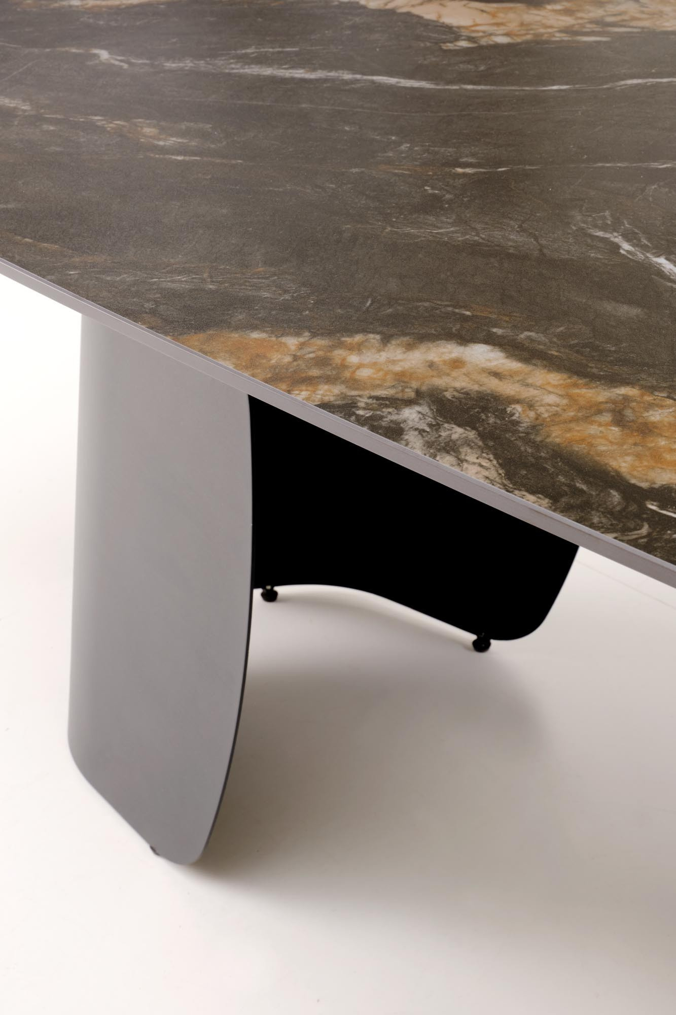 Jídelní stůl FORUM je vyroben z kvalitní práškované oceli, což zajišťuje jeho dlouhou životnost a odolnost. Práškovaná ocel je známá svou pevností a schopností odolávat poškrábání a jiným mechanickým poškozením, což z něj činí ideální volbu pro každodenní použití. Povrch s efektem černého mramoru dodává stolu luxusní vzhled, který zaujme každého návštěvníka.