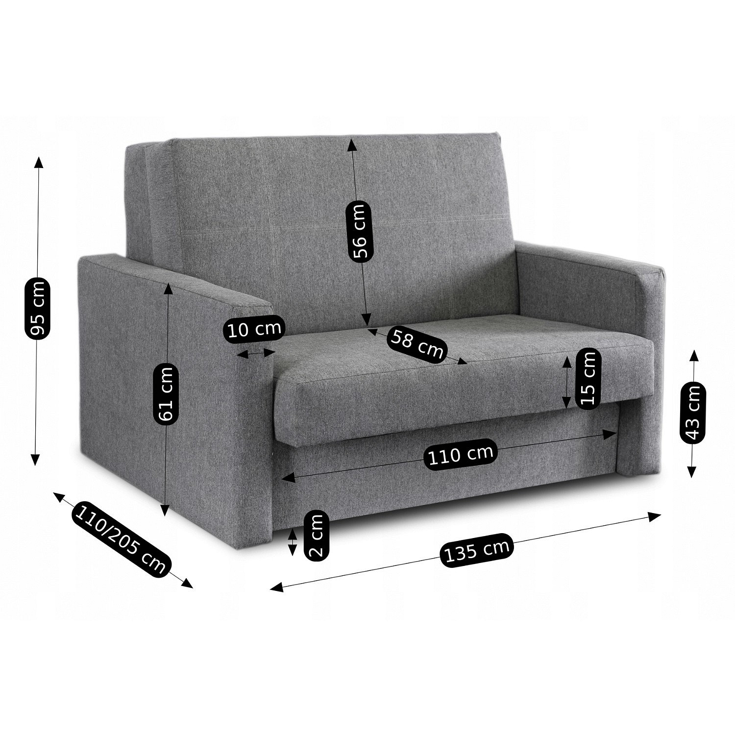 | Głębokość fotela po rozłożeniu | 205 cm |