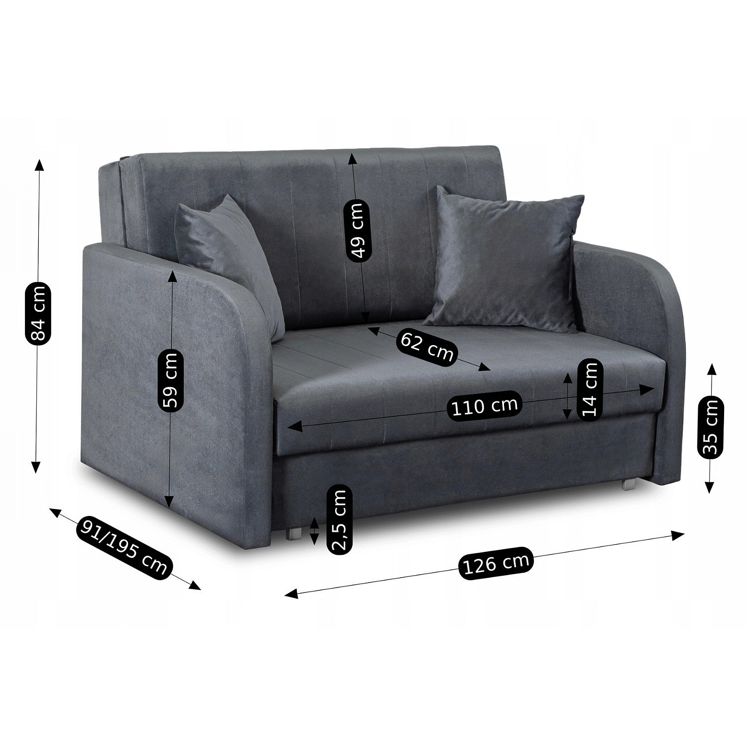 Dvojsedačková rozkládací pohovka VERO 2 Šedá