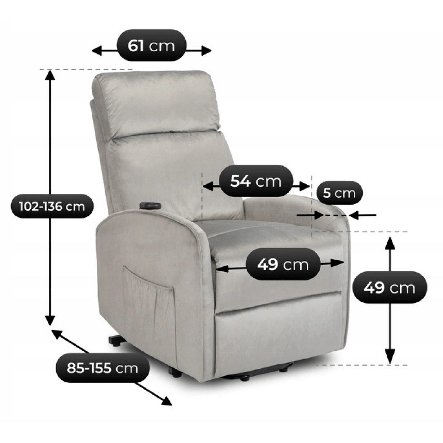 Elektricky Polohovatelné Křeslo COLTON s Funkcí Vstávání Šedý Sametový