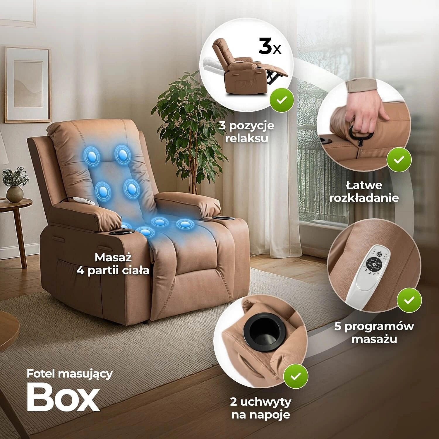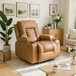 Masážní křeslo BOX Rozkládací s podnožkou Karamelová Ekokůže