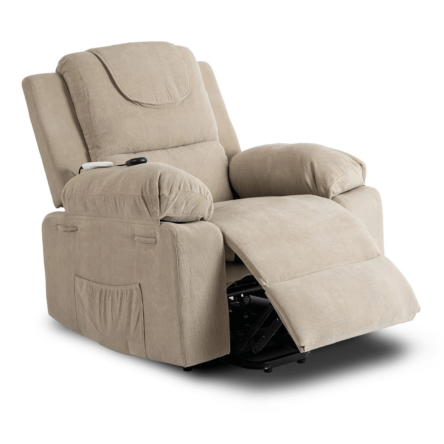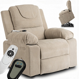 Elektricky polohovatelné masážní křeslo FENIX s funkcí vstávání Béžový manšestr